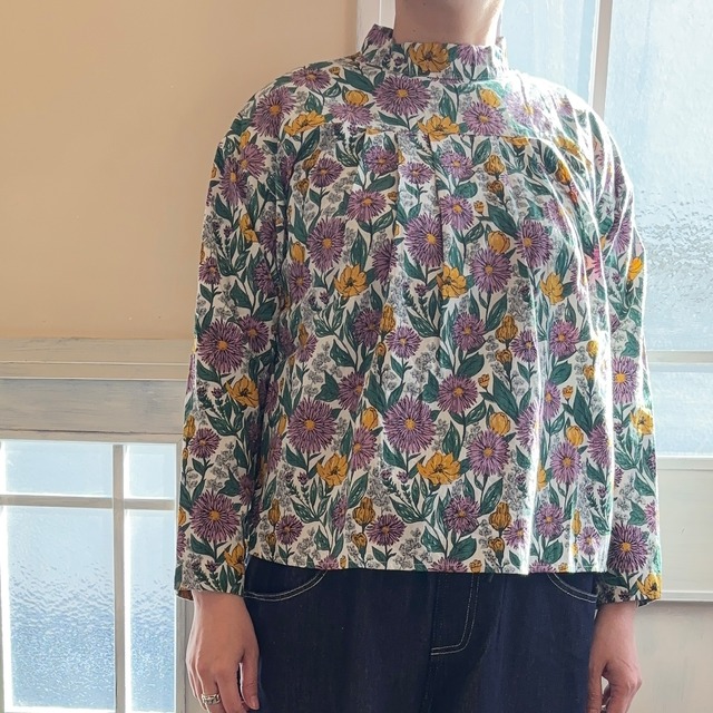 ボタニカルガーデンプリント スタンドカラー タックプルオーバー 《CALINER》カリネ