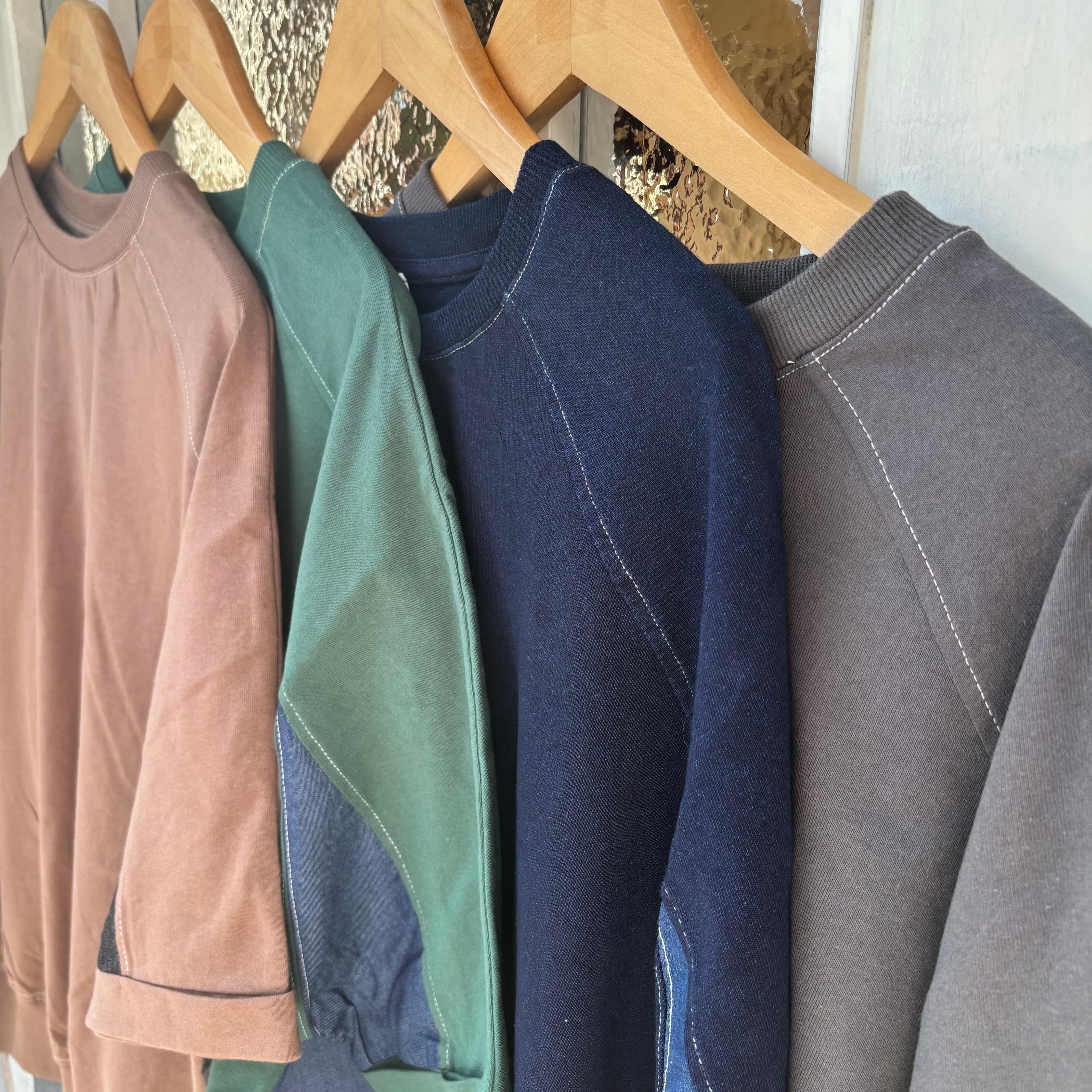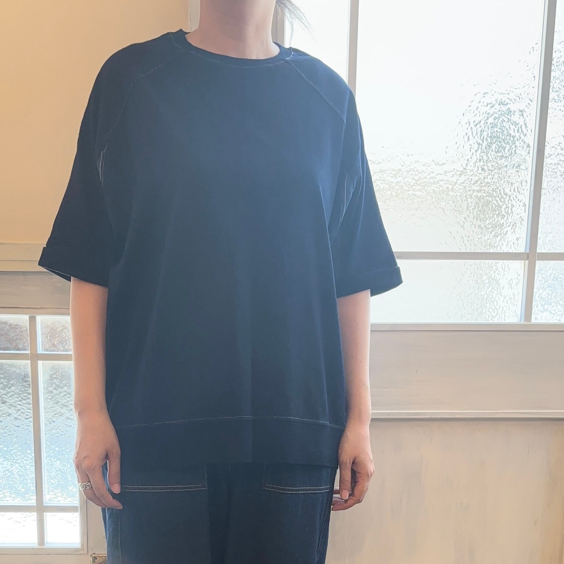 全体のシルエットはゆとりのあるリラクシーなバランスで、ラグランスリーブが肩周りを華奢に見せながら、自然とこなれた印象に。身幅もゆったりとしており、体のラインを拾わず体型カバーにも優れています。袖口や裾の配色切替にもさりげないこだわりがあり、細部まで抜かりないデザインに。ワイドパンツやバルーンスカートなど、ボリューム感のあるボトムとも好相性。デニムを取り入れたナチュラルコーデにもすっとなじみ、バックスタイルで差がつく大人の1枚。春から秋口までロングシーズンで着用できる万能アイテムです。