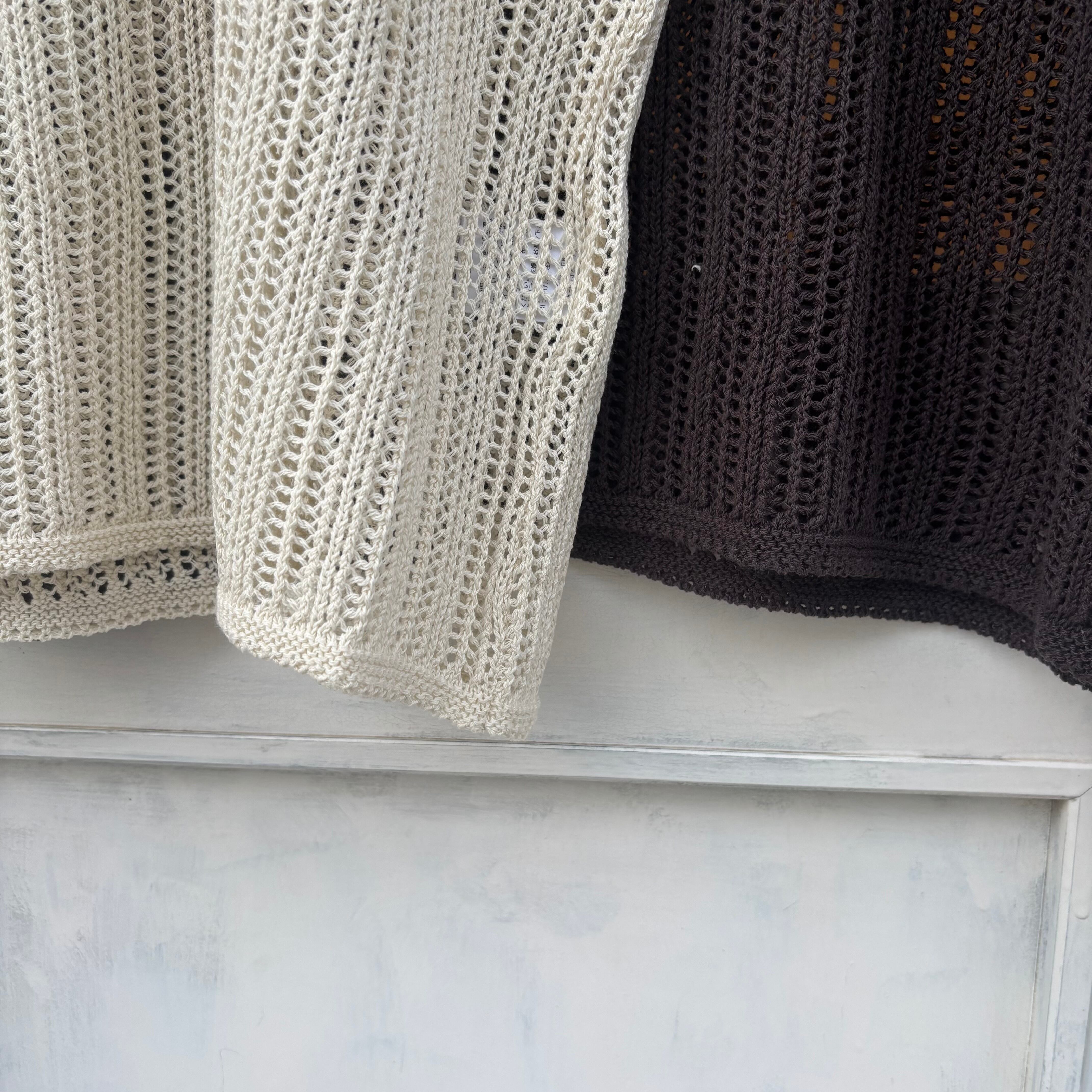綿100%のさらりとした肌触りが心地よく、通気性に優れた透かし編みデザインで春から秋口まで長く活躍してくれるアイテムです。