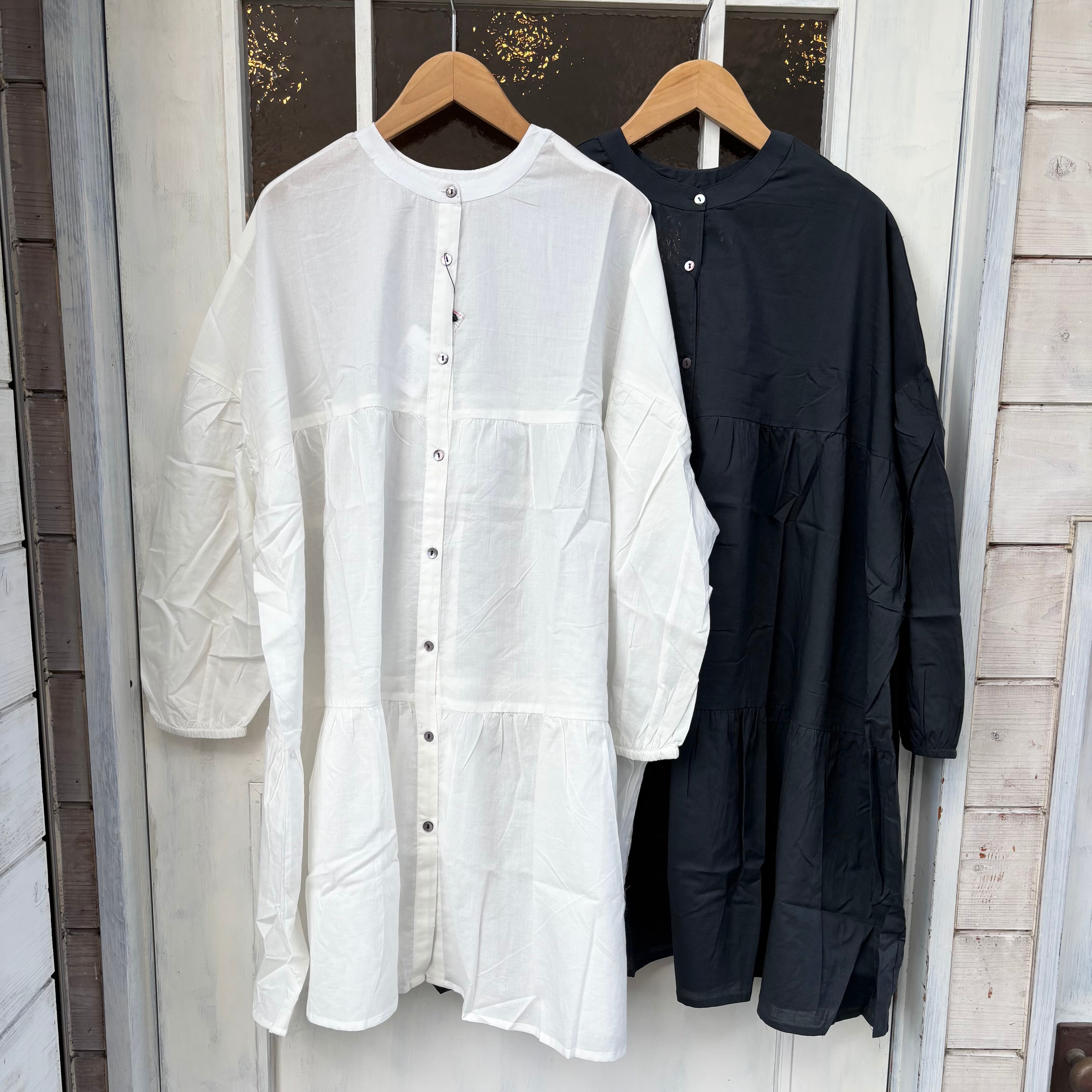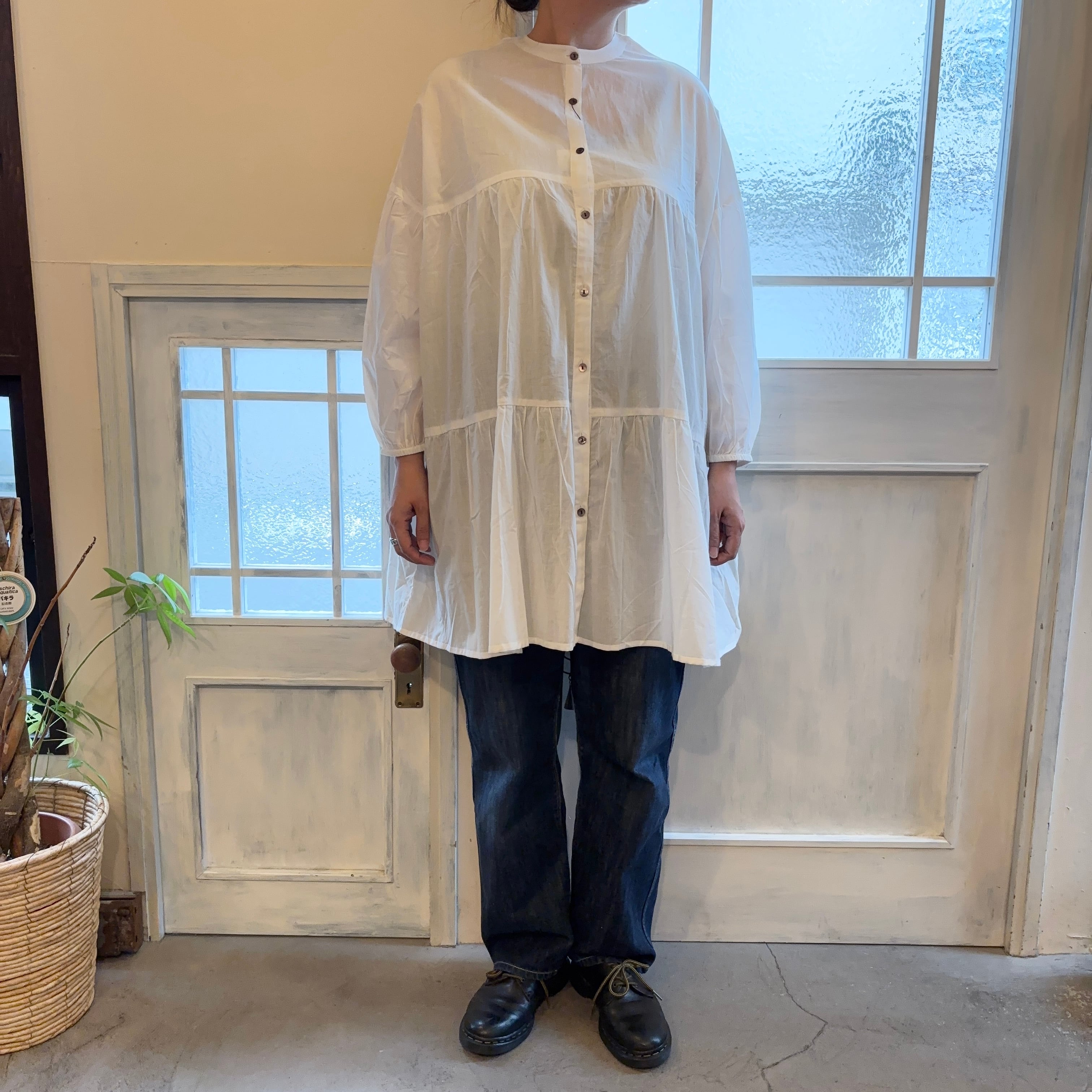 ティアードブラウスのチュニック丈ブラウスです。