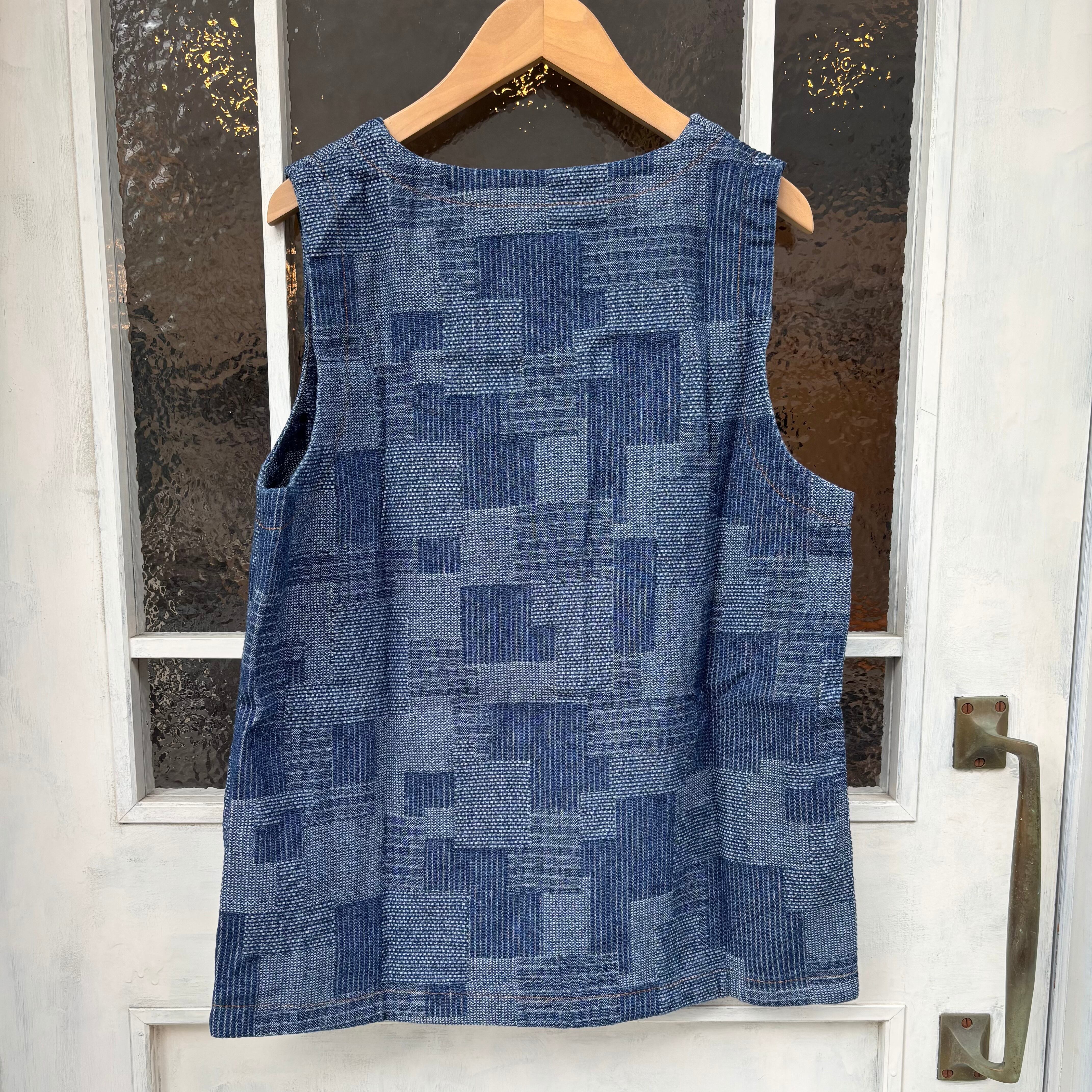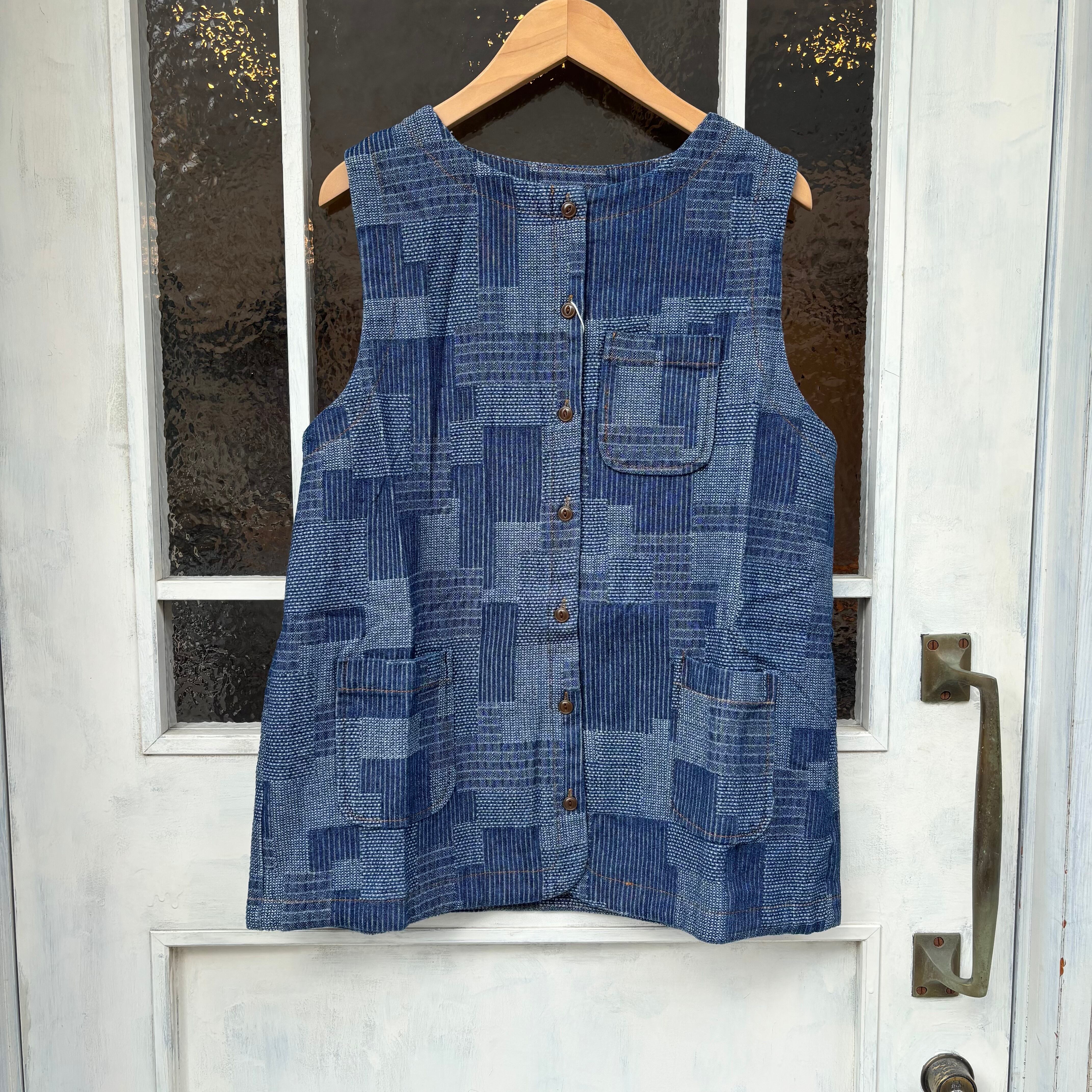 織りで表現した凹凸のあるさまざまな柄をパッチワークのように配置したユニークな生地。適度な厚みがありつつも、ごわつきの少ないやわらかな風合いが魅力です。