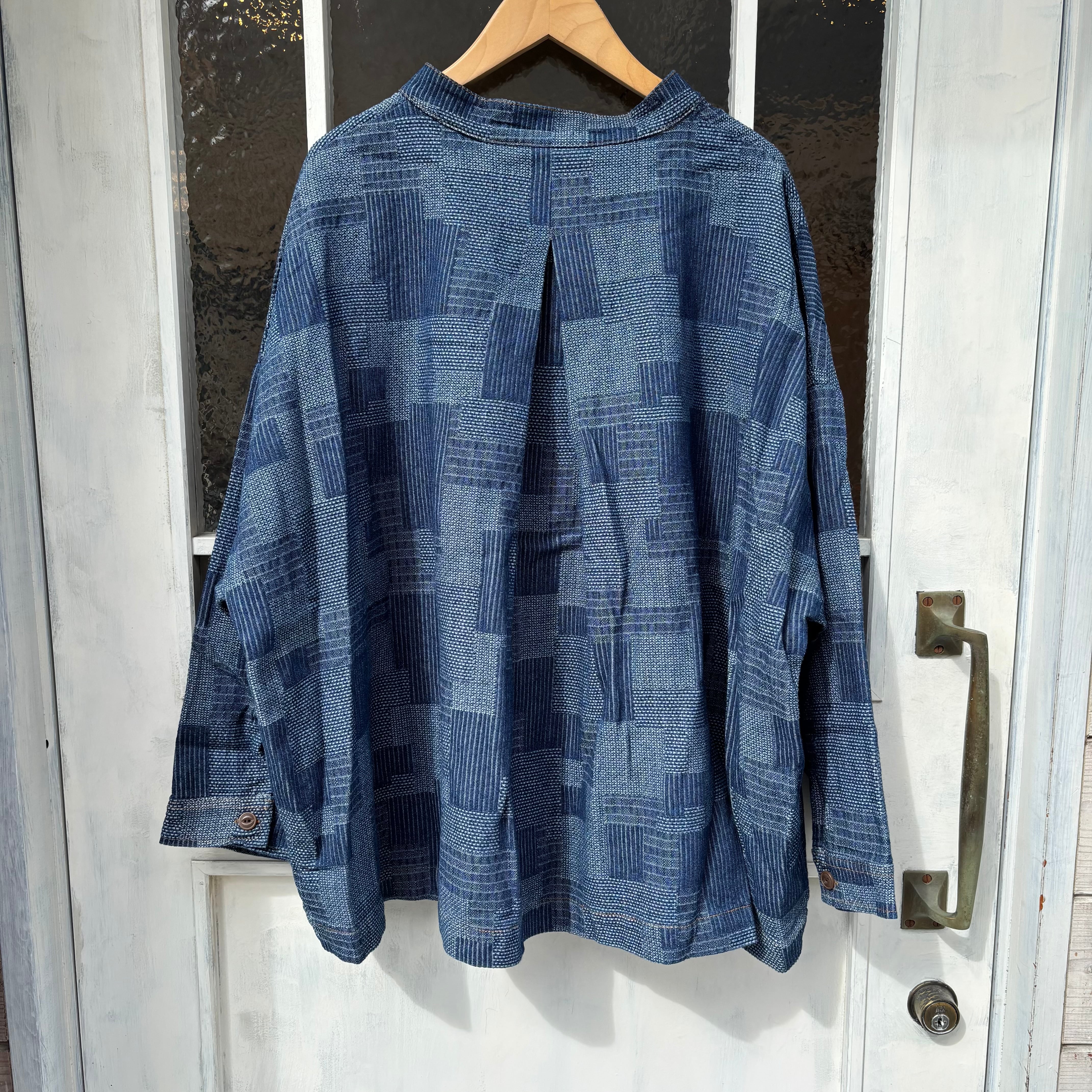 インディゴ染めのカジュアルな生地を用いながらも、スタンドカラーできちんと感のある印象のジャケット。広めにとった身幅とドロップショルダー、後ろに入れたタックでゆったりとラフに羽織れます。通常のデニムジャケットとは一味違う、洒落感ただよう一着です。