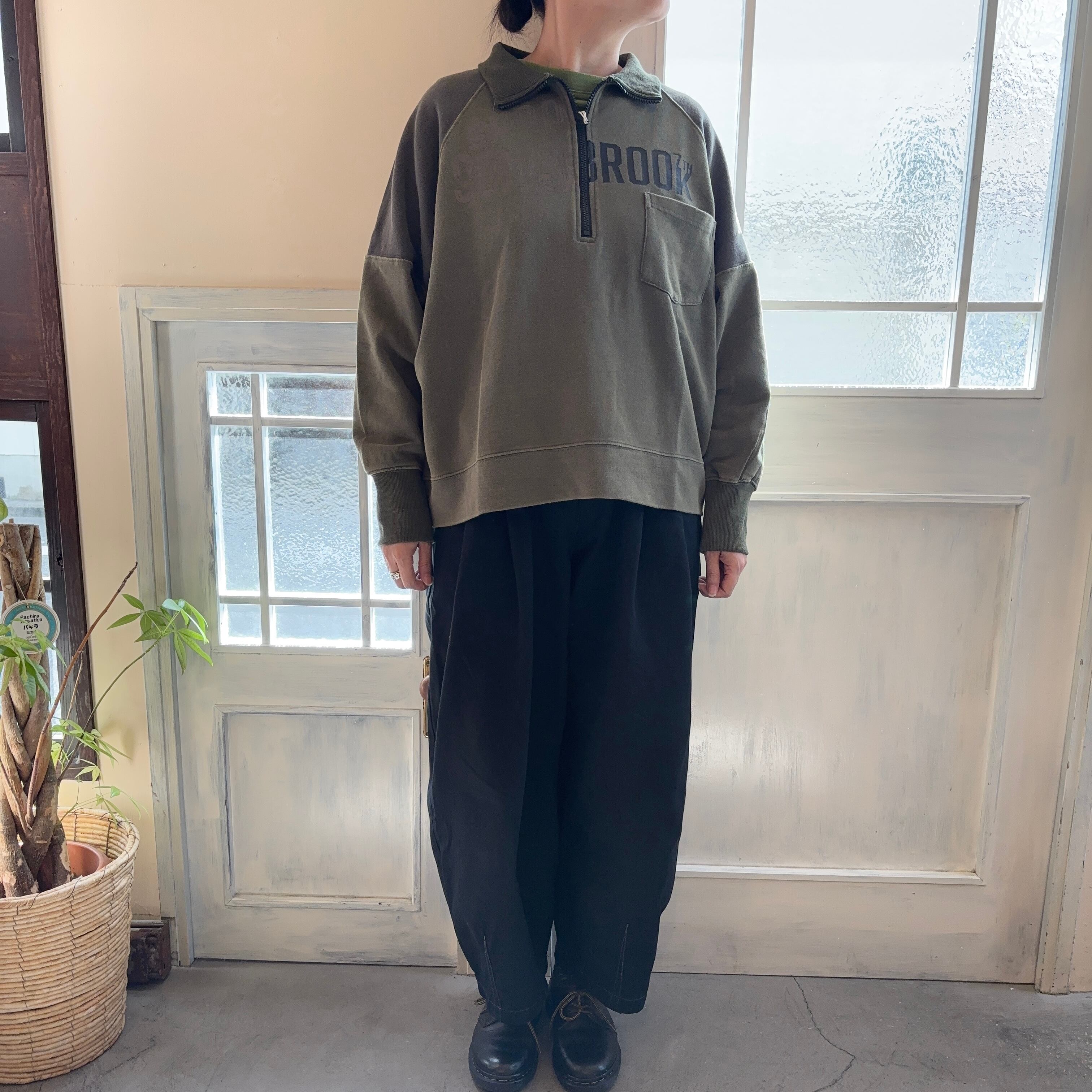 ハーフZIPでレイヤードを楽しんだり、メンズライクなロゴ入り裏毛です。