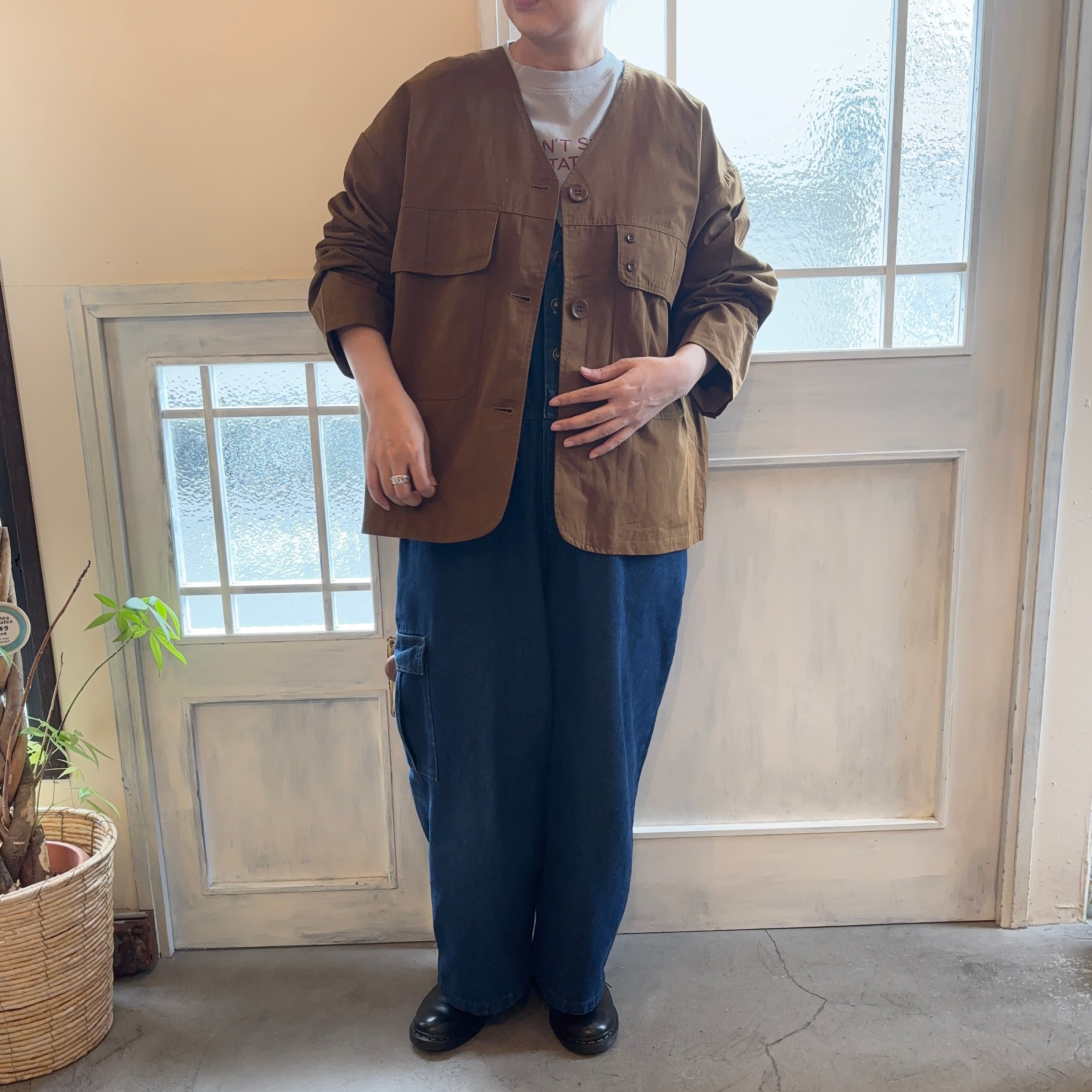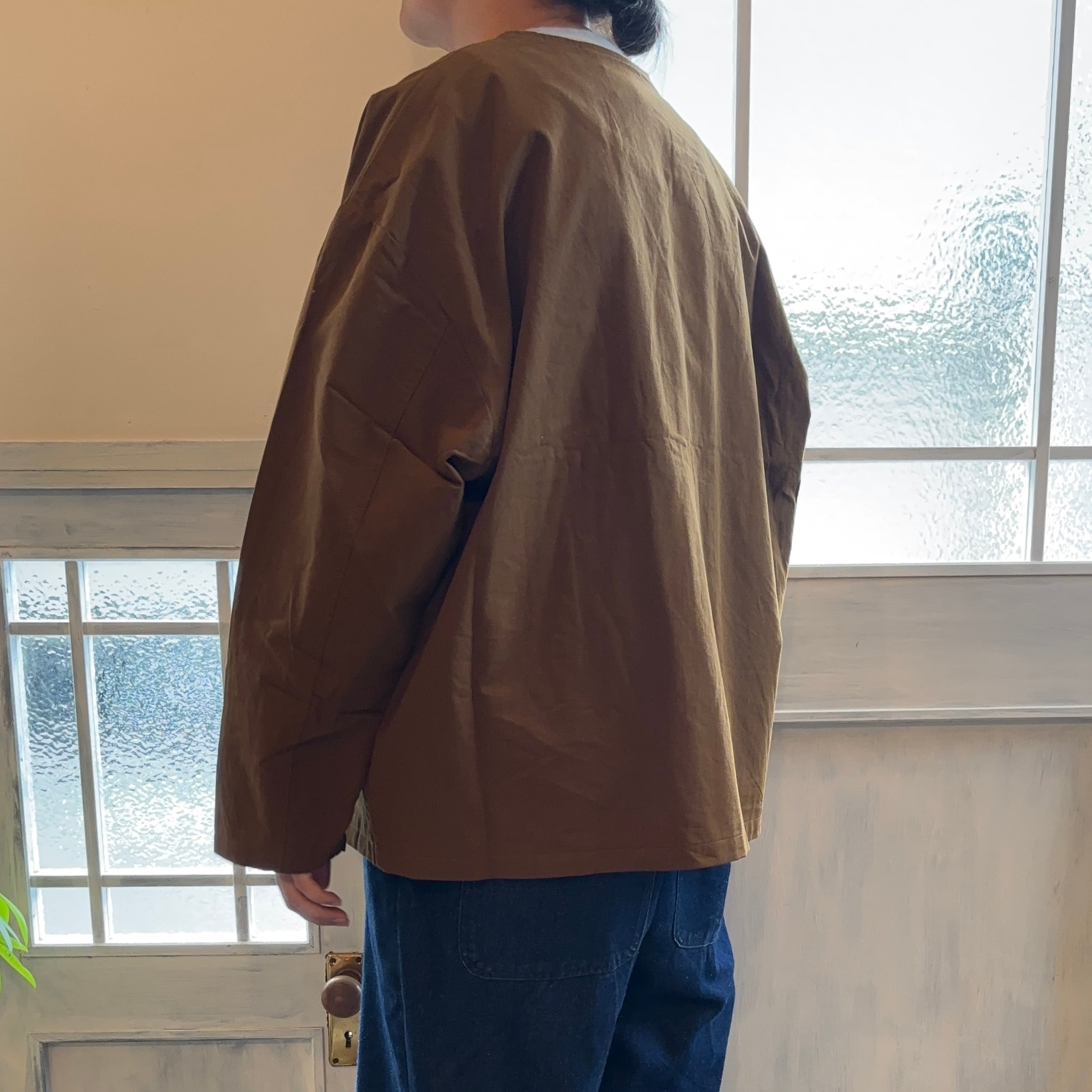 存在感のある大きめポケットとこなれ感漂うビッグシルエットがポイント。ノーカラーデザインで抜け感を演出し、ラフさの中にも大人っぽさをプラス。デイリーに着回ししやすく、季節の変わり目にも重宝するライトアウターです。