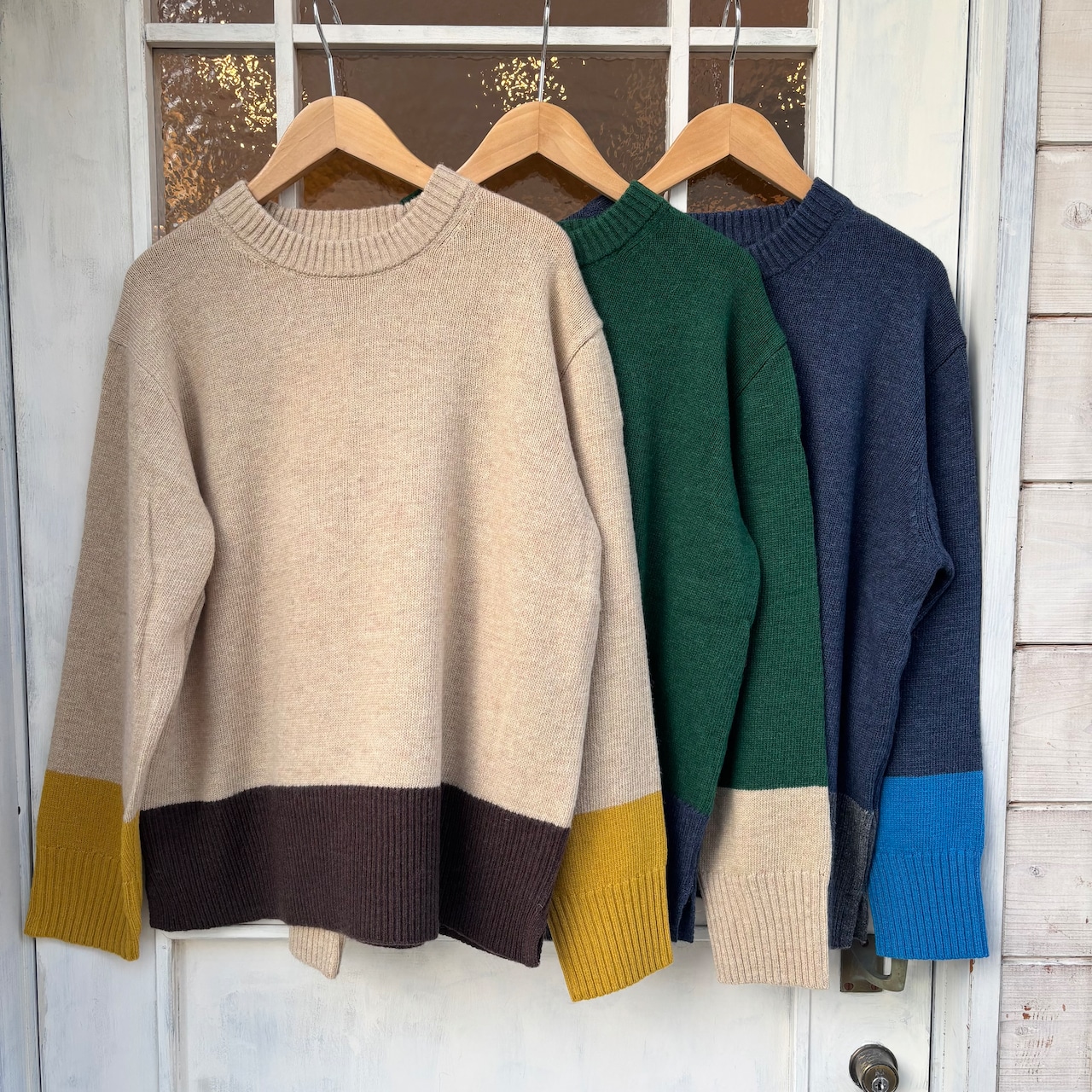 ラムウール 配色切替 セーター 《kermu》ケルム