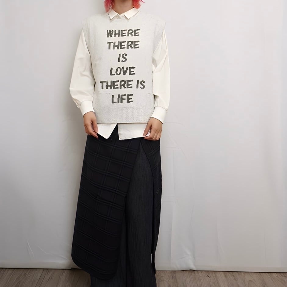 ロゴがプリントされたニットベストです。