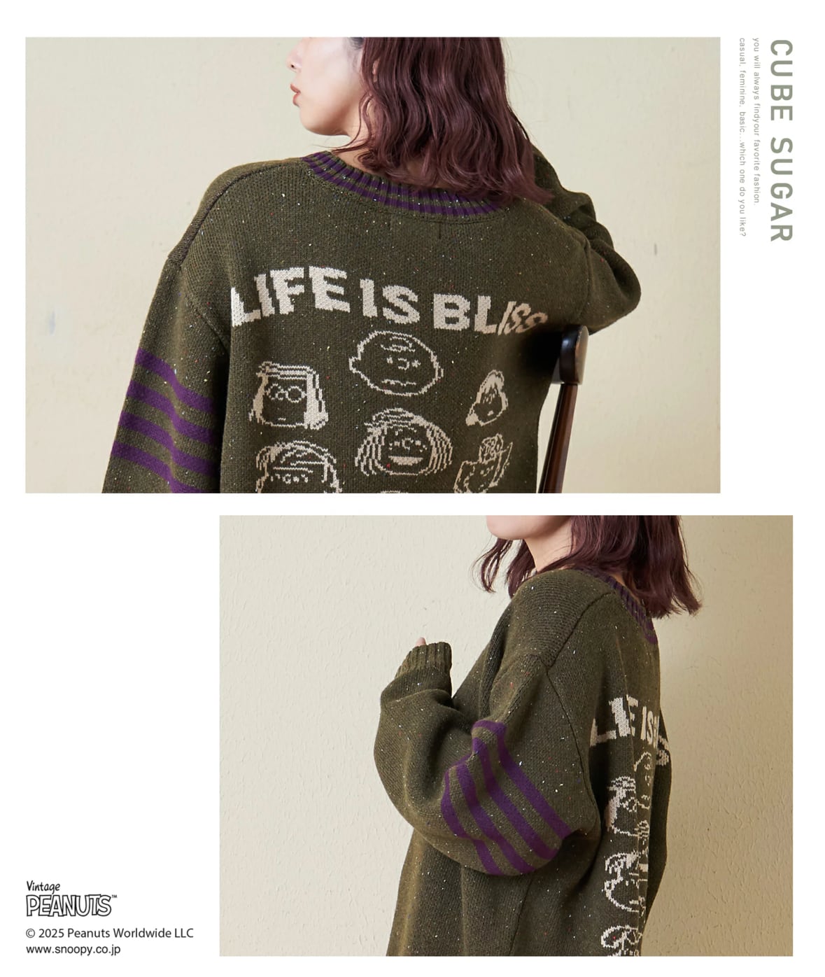 PEANUTSのイメージにマッチするようカラフルなネップニットを使用し、ほっこりあたたかみのあるアメカジムード。スヌーピー好きはもちろん、トラッド×アメカジスタイルを楽しみたい方にもおすすめです♪