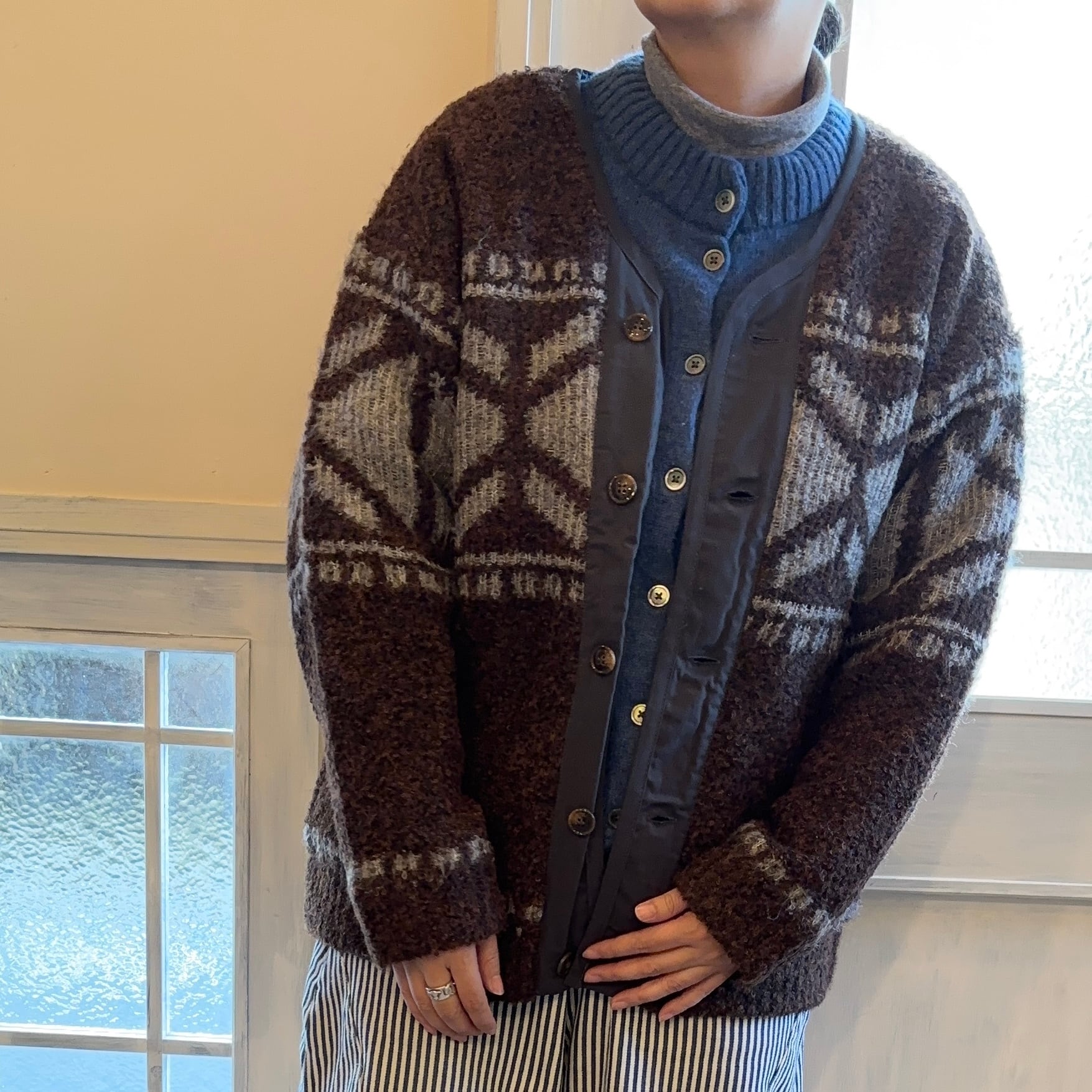 裏地がフリースになっており、あたたかいゆったりサイズのカーディガンです。