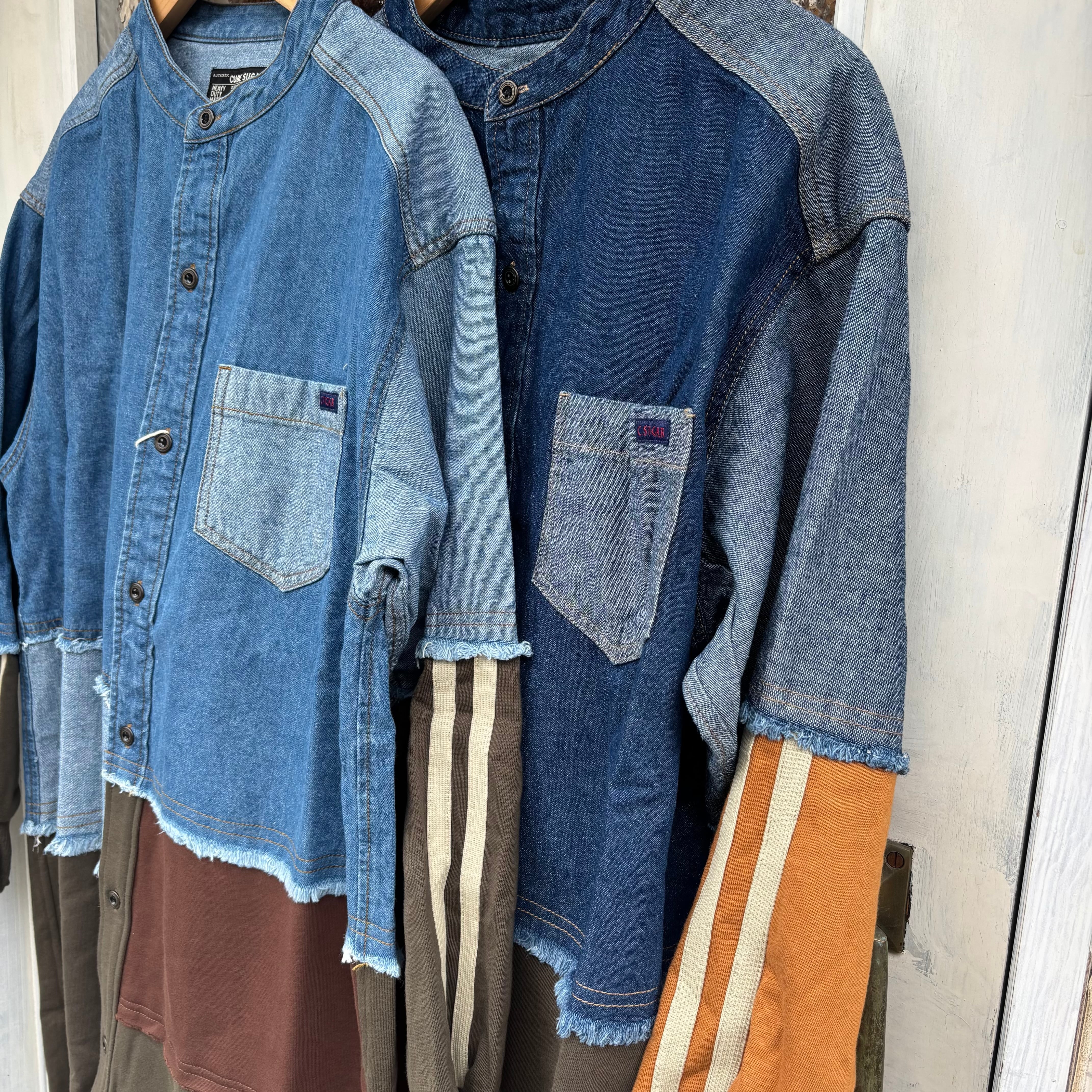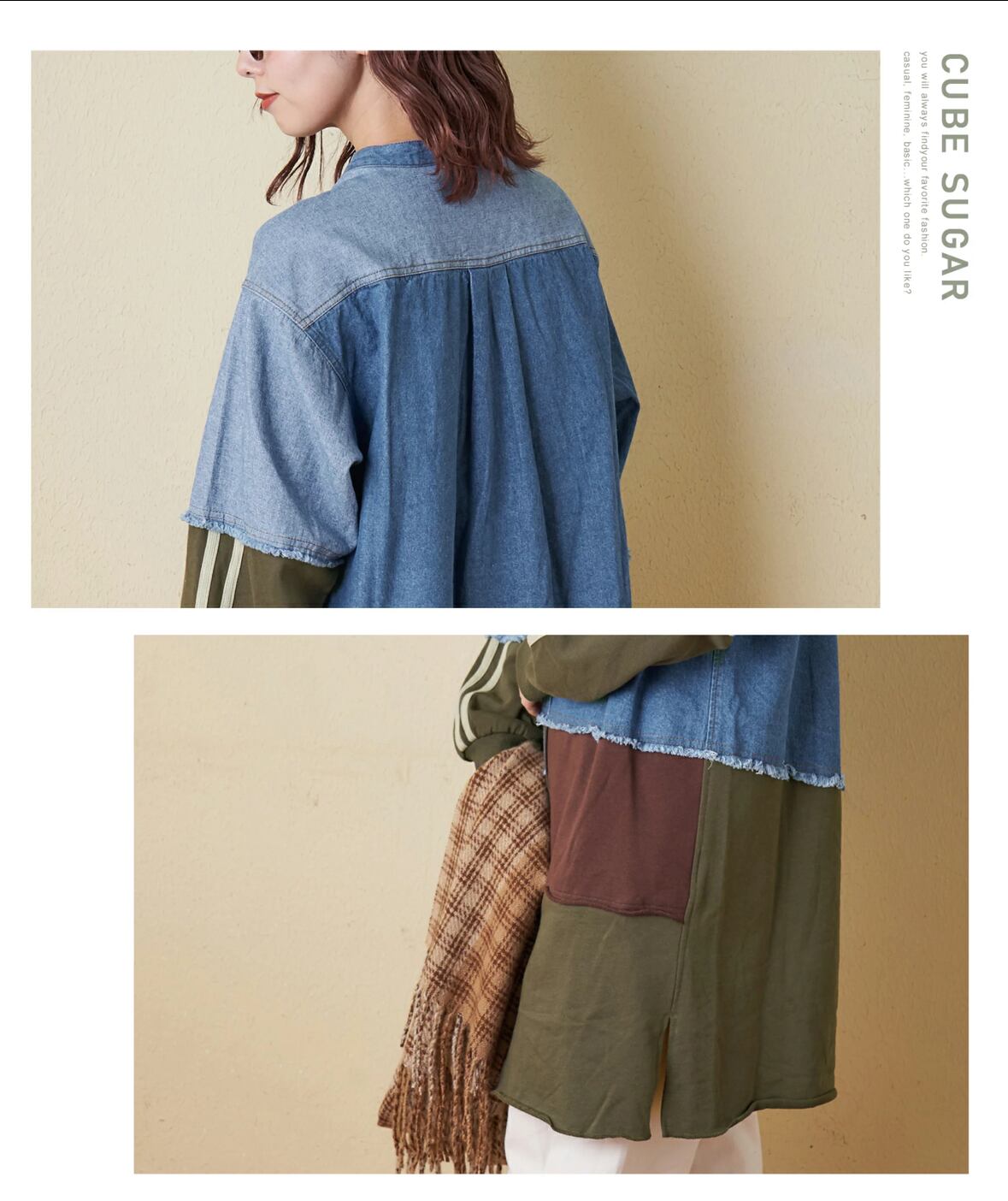 デニム × スウェット リメイク風 チュニック シャツワンピース 《CUBESUGAR》キューブシュガー