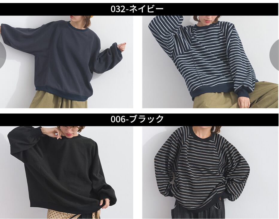 表と裏で雰囲気が大きく変わるリバーシブル仕様で、フリース面は丸みのあるシルエットが自然なやさしさを引き立て、ボーダー面はカジュアルでメンズライクなムードに。ラグランスリーブが肩のラインをなめらかに見せ、腕の動きもスムーズです。