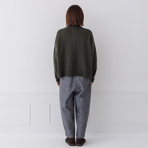 ゆったりとしたワイドシルエットで、体のラインを拾わずリラックス感のある着心地で、パンツにもスカートにも合わせやすい程よい丈感で、バランス良く着こなせます。