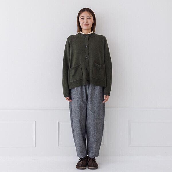 ラムウール リブ襟カーディガン 《kermu》ケルム