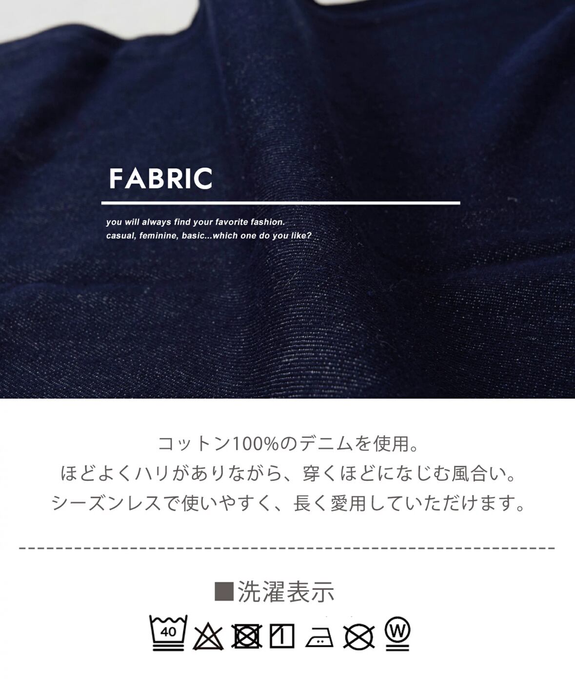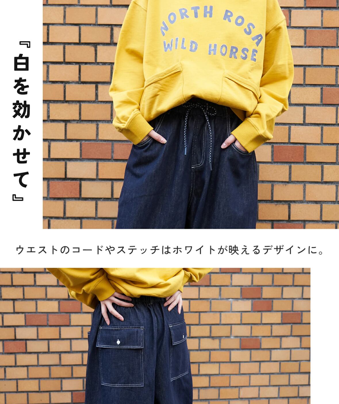 後ろ姿のアクセントになるフラップポケットや柄を効かせたパラコードの紐など、シンプルな中に遊び心を忍ばせた一本。Tシャツからニットまで合わせやすく、季節を問わず活躍してくれるデニムです。