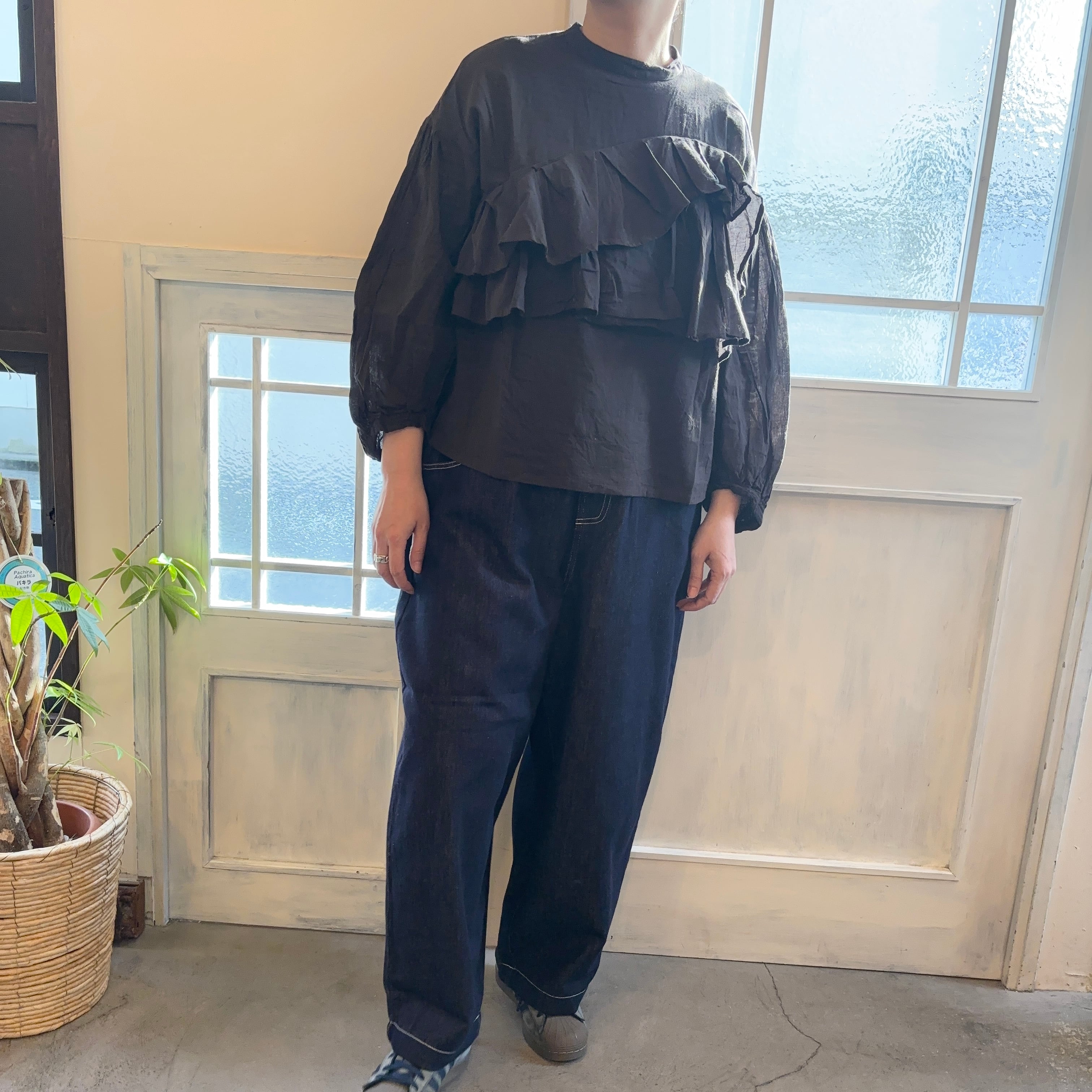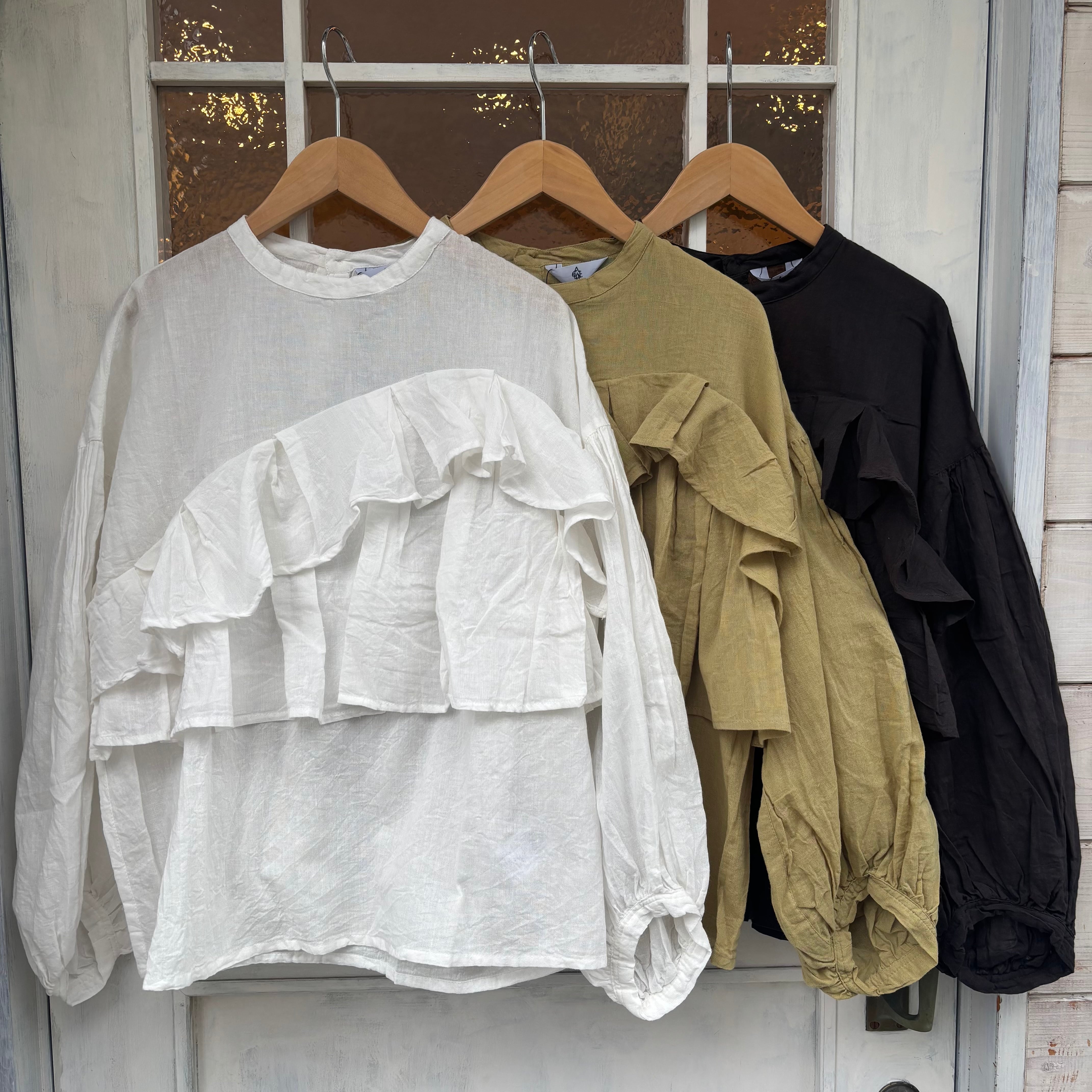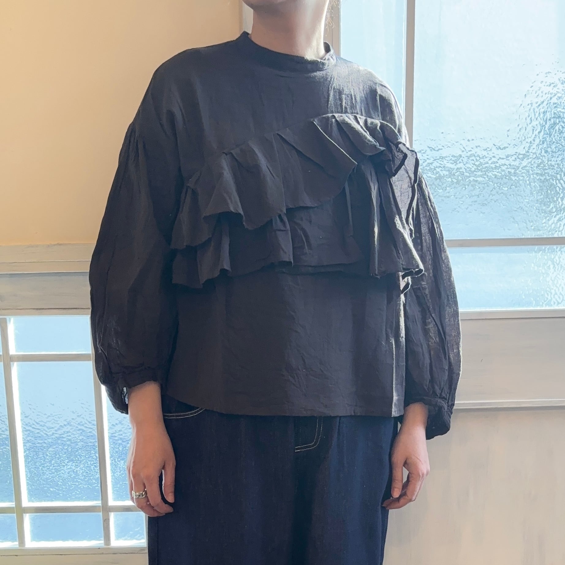ボイルガーゼ 無地タック フリル プルオーバー 《CALINER》カリネ
