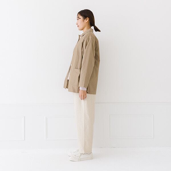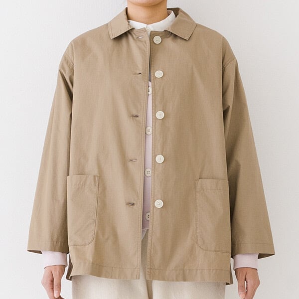 高密度なタイプライター素材が描く、シャツのように軽やかなステンカラーコート。