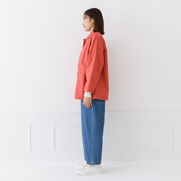ゆとりのあるボックスシルエットと清潔感のあるホワイトボタンが、大人の日常に洗練された「抜け感」と「凛とした表情」を添えます。