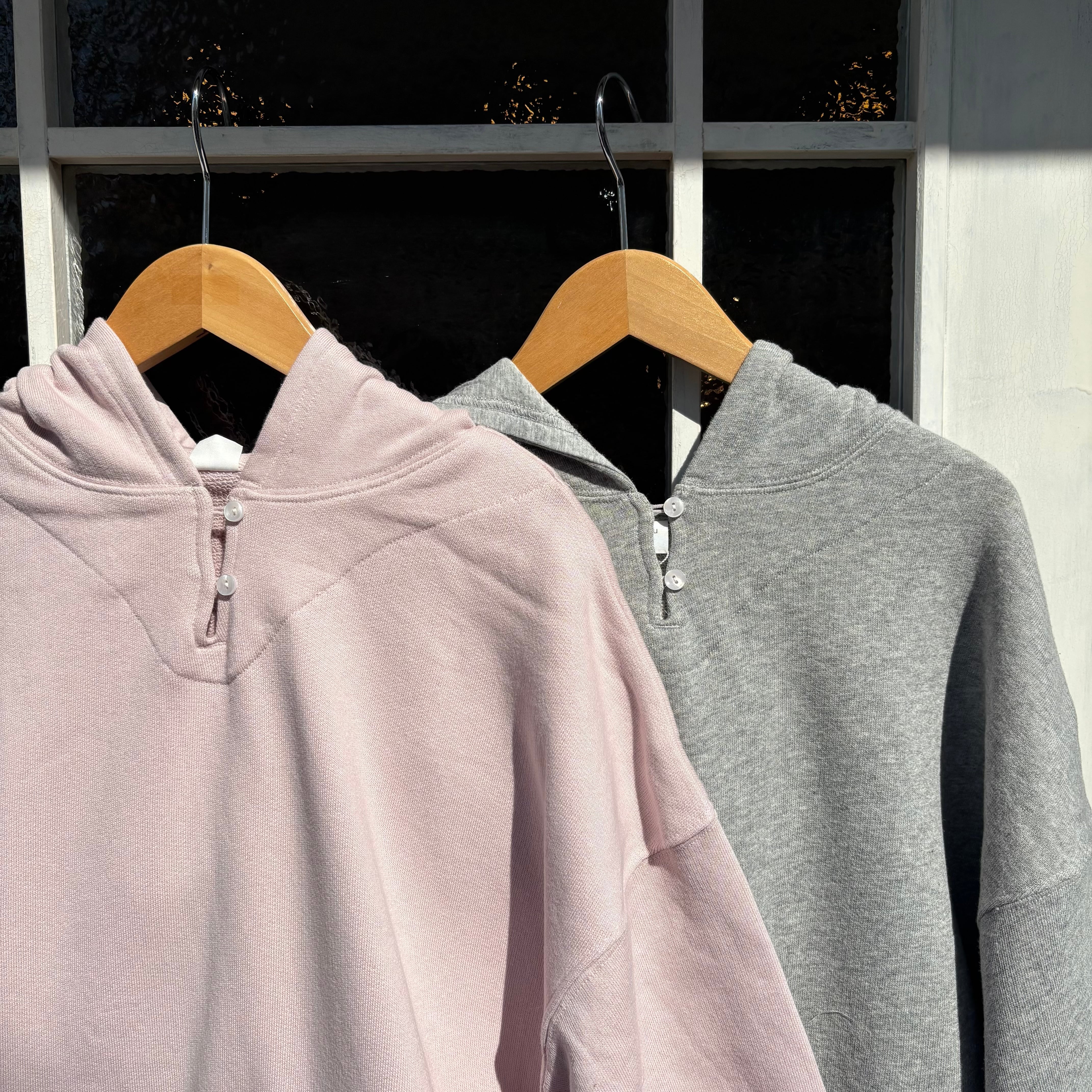 ヘンリーネックのボタン使いが気品を添える、大人仕様のフーディー。