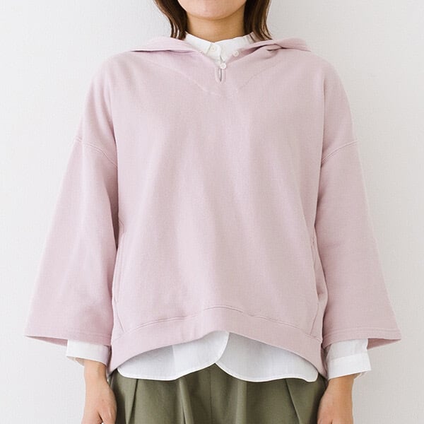 コットンガーゼ裏毛 ドロスト 8分袖 フーディー 《kermu》ケルム
