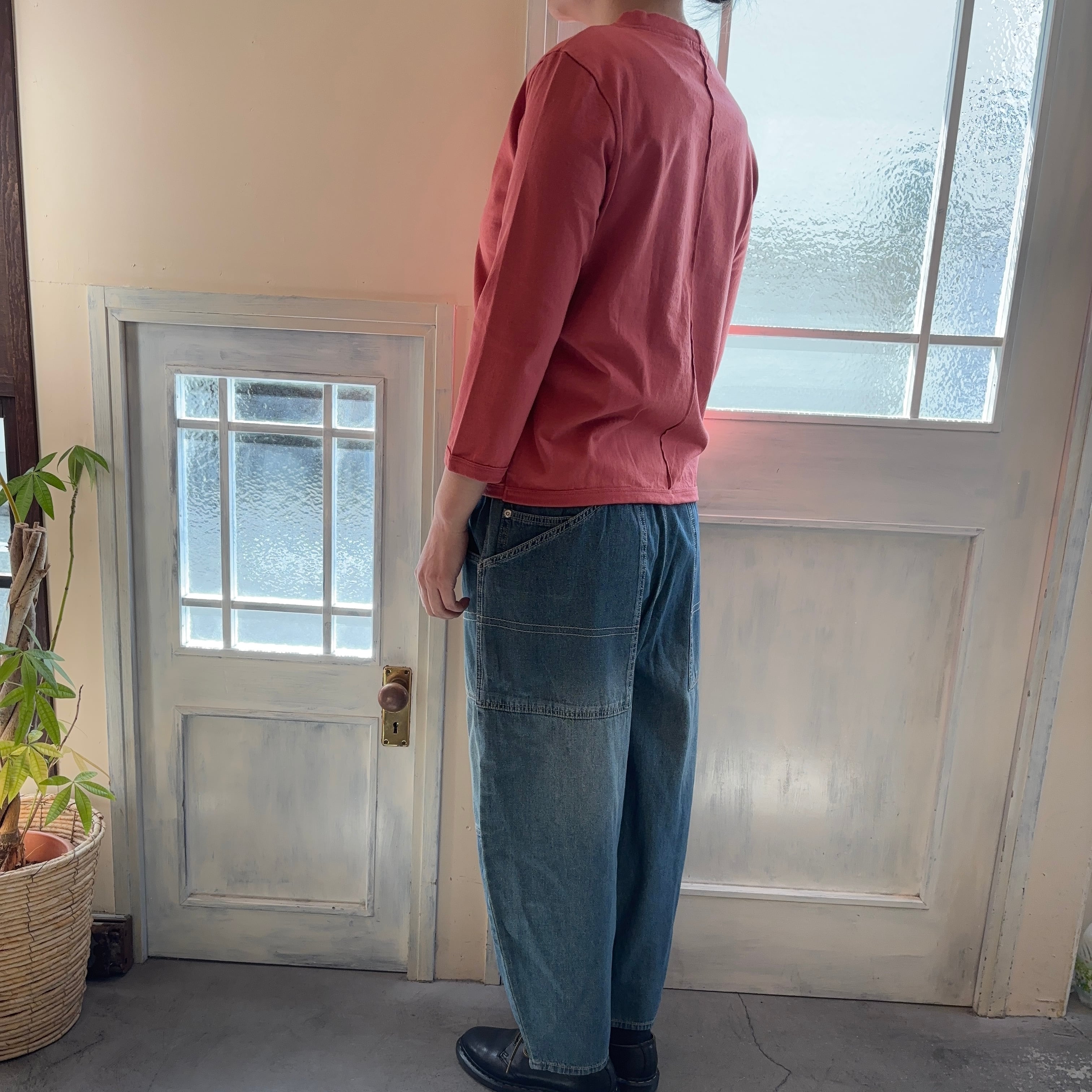 ●素材感の特徴を表現するため製品染め・製品洗いを施しております。1枚1枚の色の出方やサイズ感に少し差が出る事がございますが、この製品の特長としてお楽しみください。