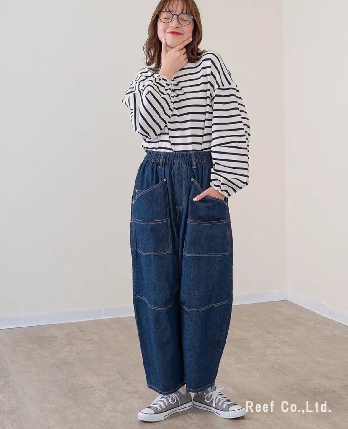定番のデニムボールパンツ同様、オーバーサイズでゆったり履けます。