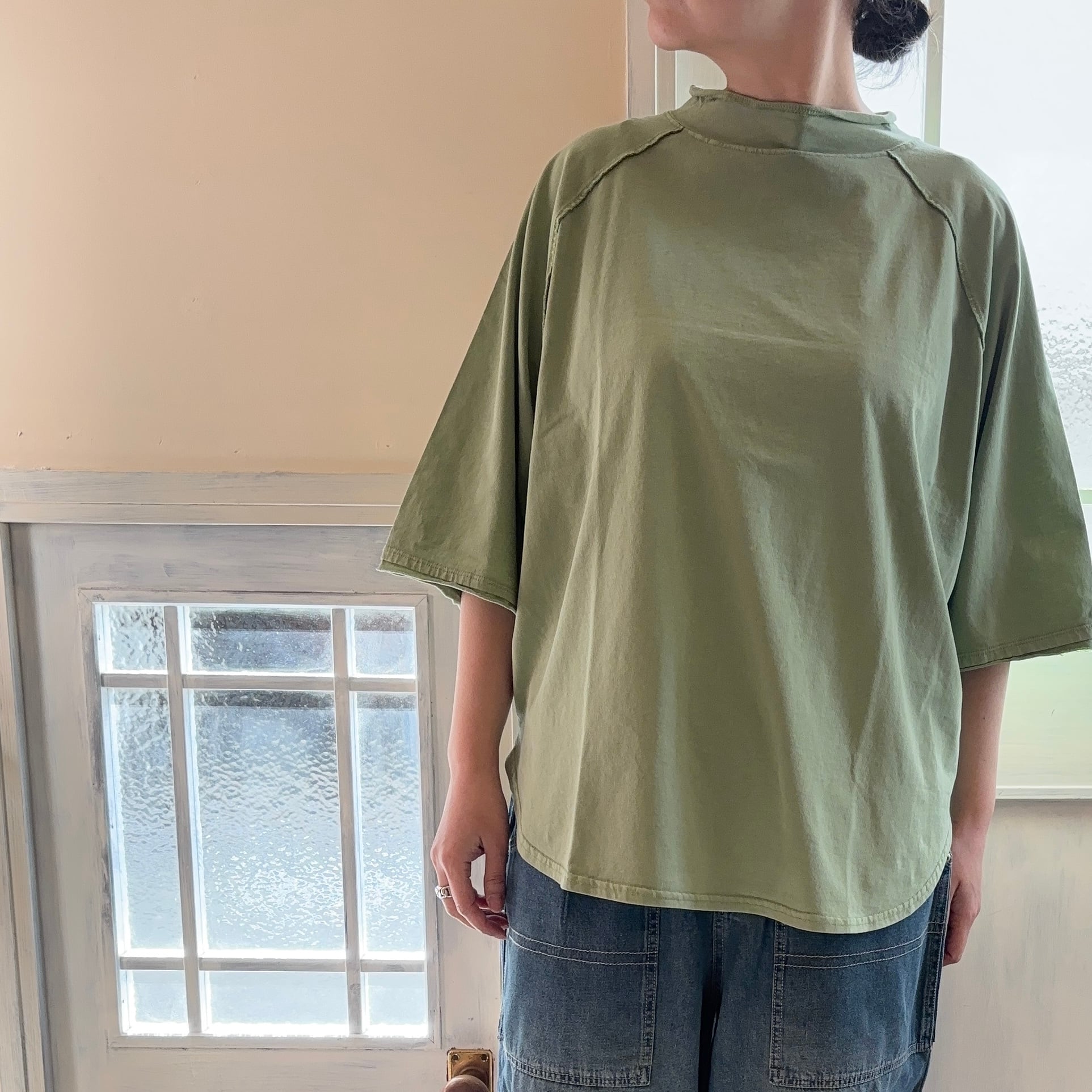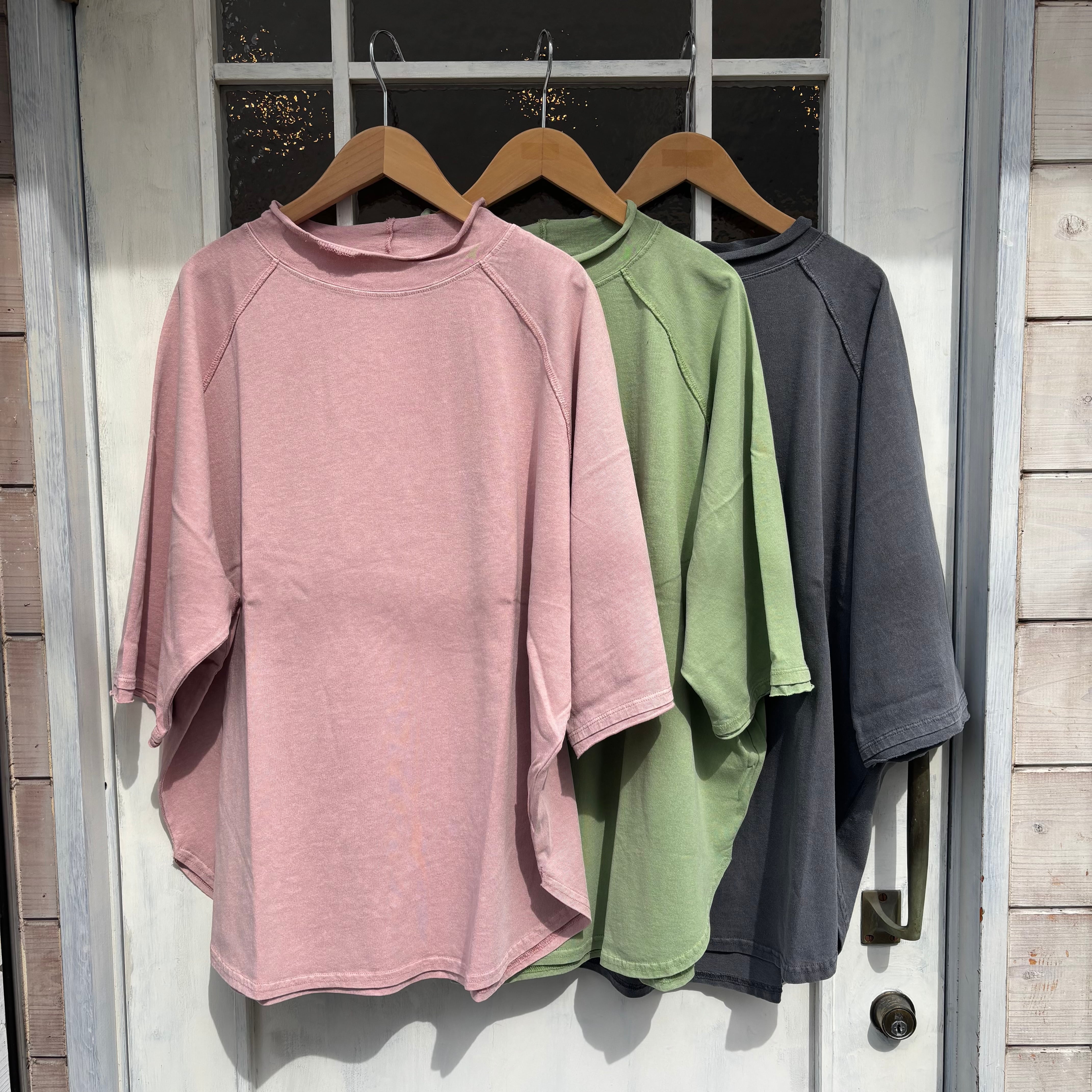 いつも人気のロールネックのゆったりシルエットで体型カバーにオススメの一枚です。
