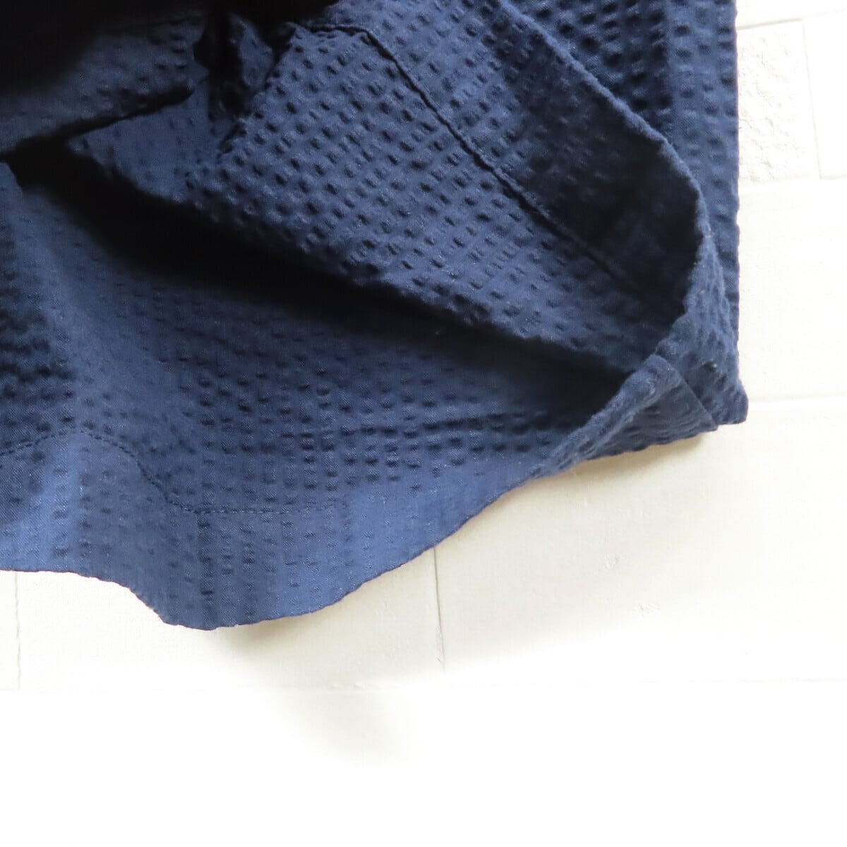 表面に細かな凹凸(しぼ)があるのが特徴で、肌に触れる面積が少ないため、汗ばむ季節でもベタつきにくく、さらっとした着心地が続き、