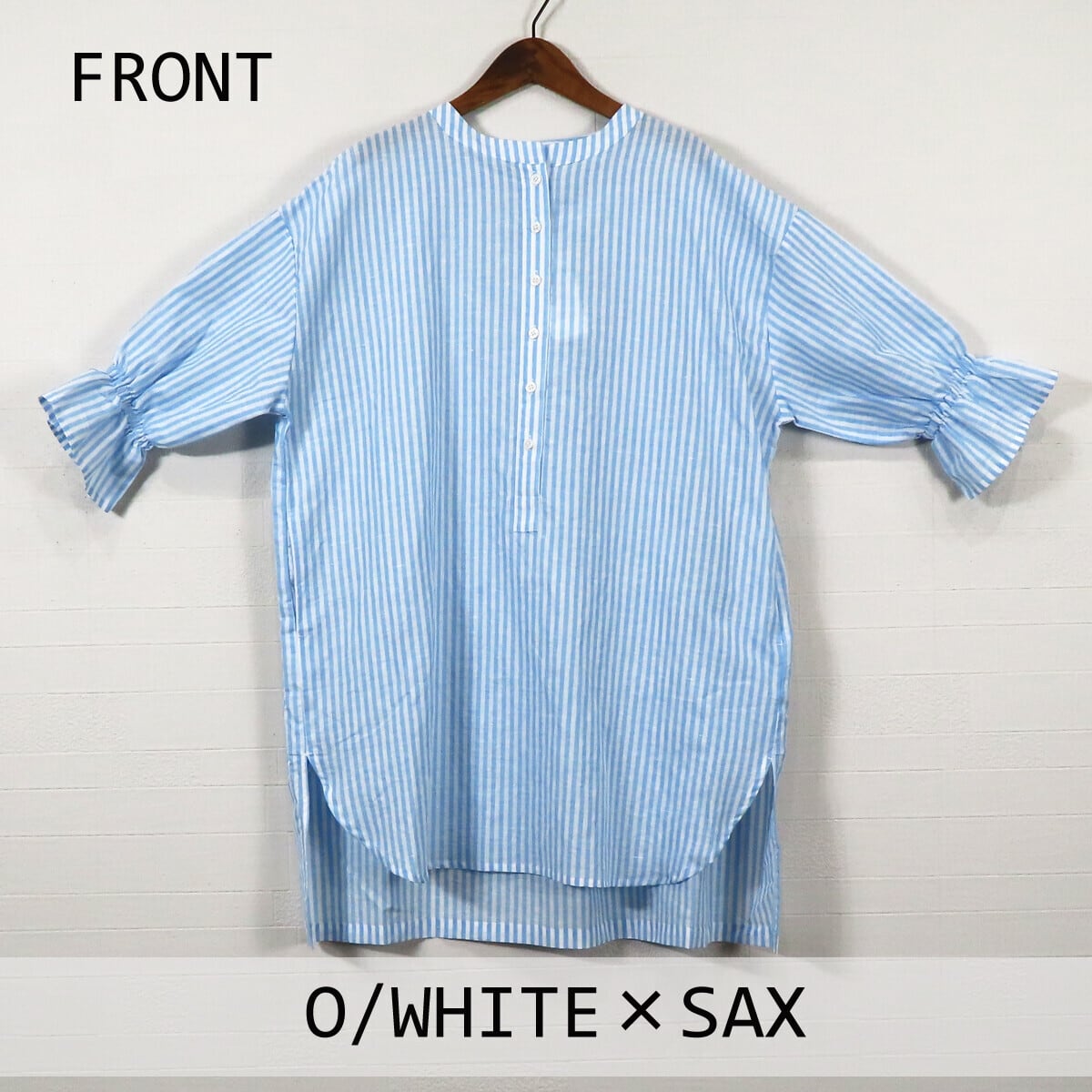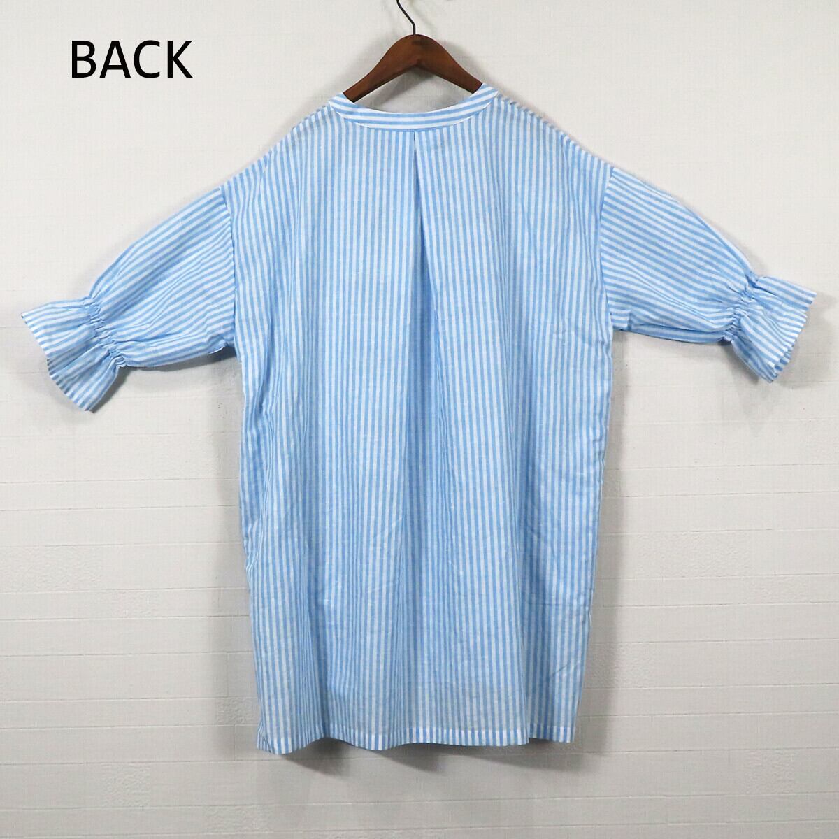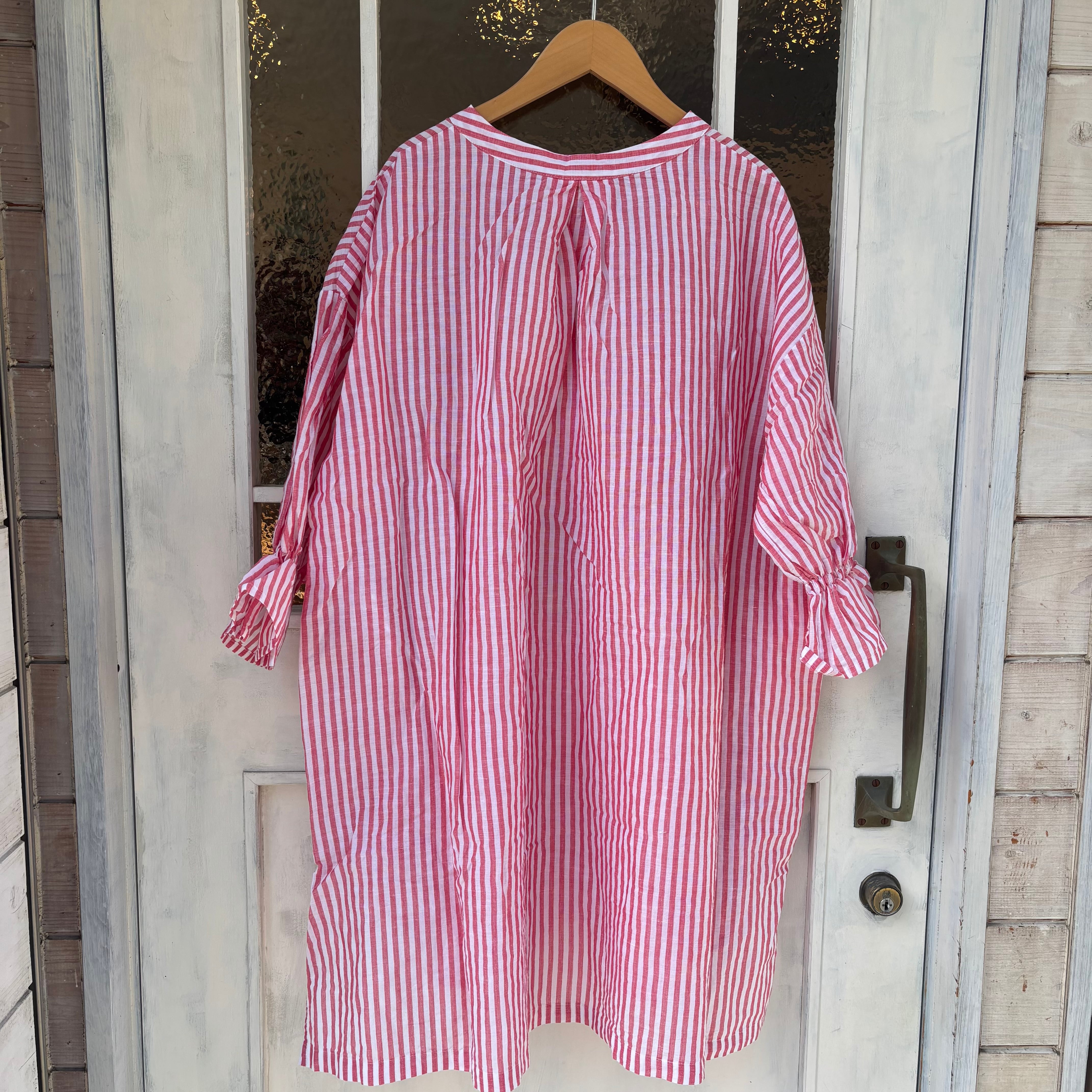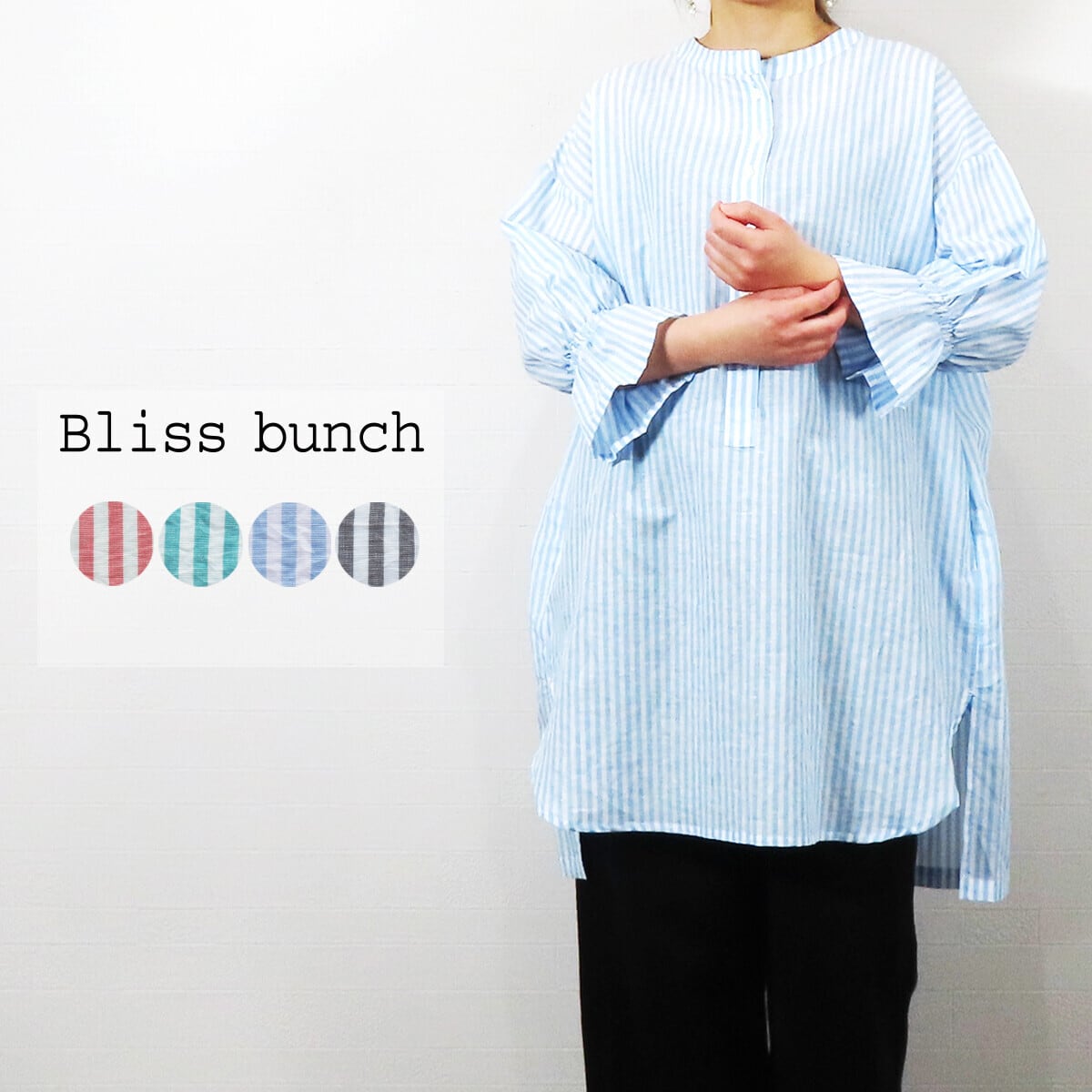 綿麻ストライプ キャンディスリーブ チュニック《blissbunch》ブリスバンチ
