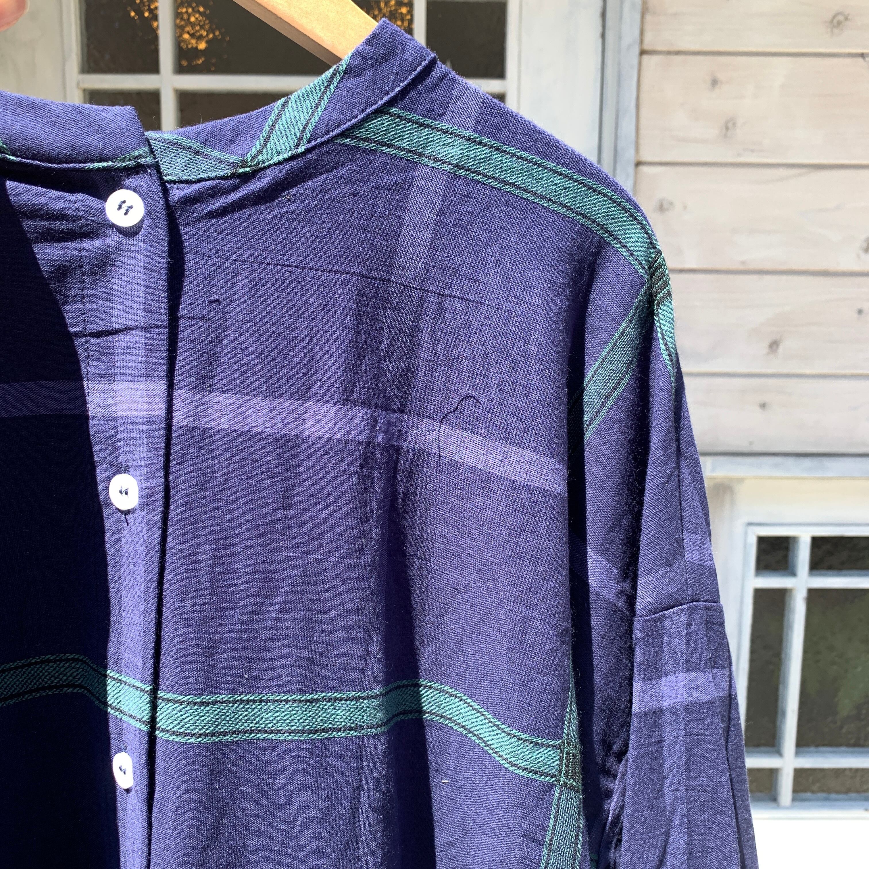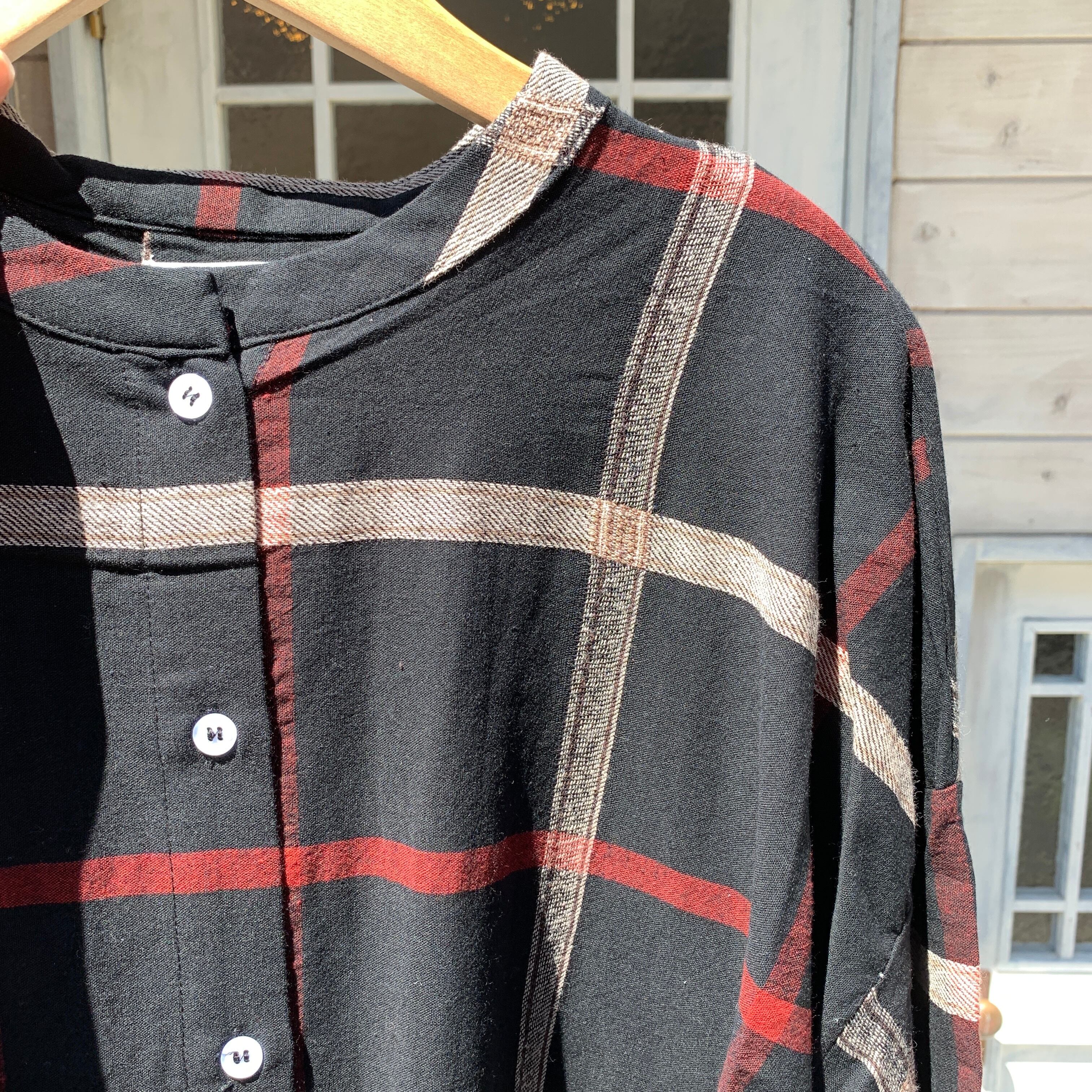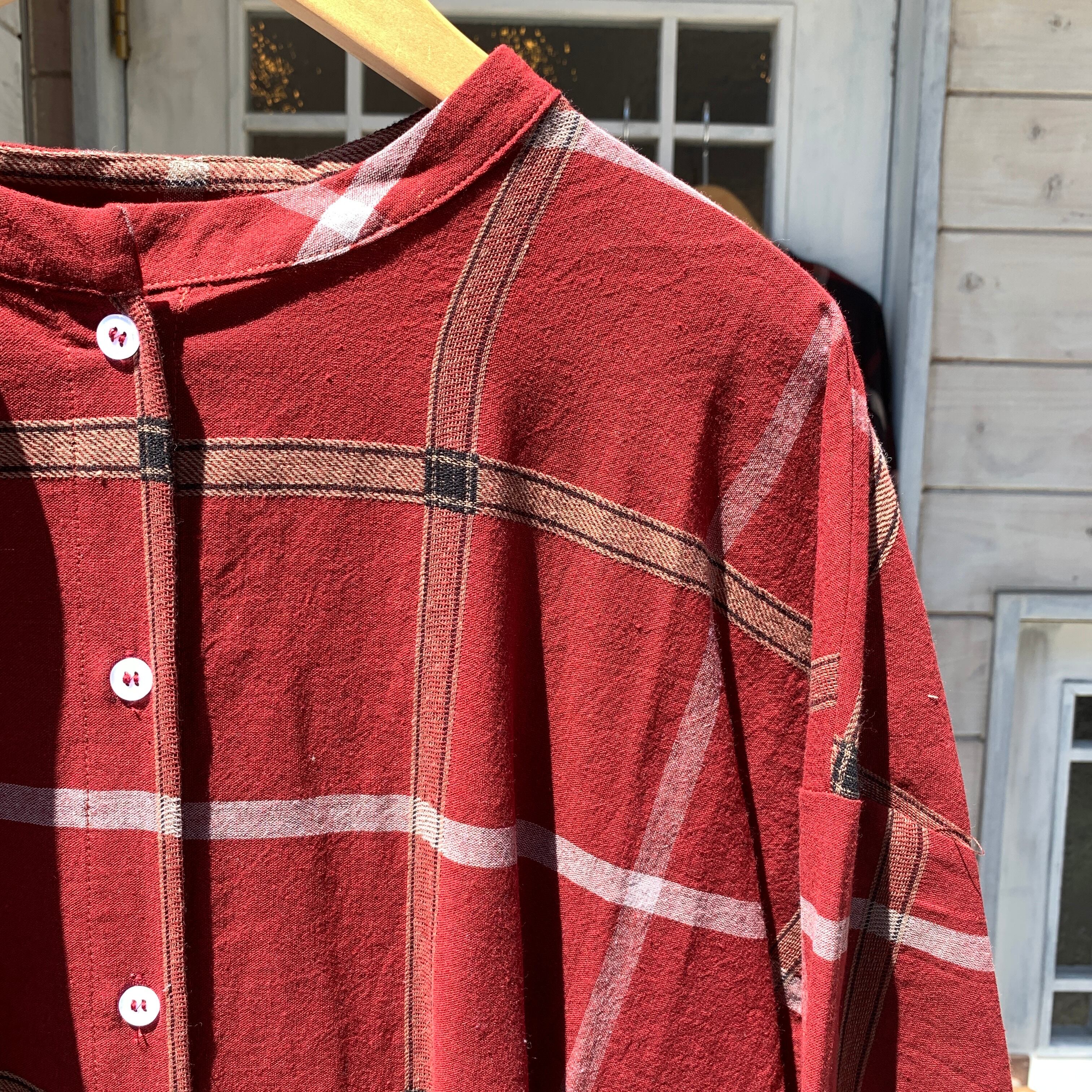 ナチュラルな風合いのコットンに、大きめのチェック柄をあわせたワンピースです。