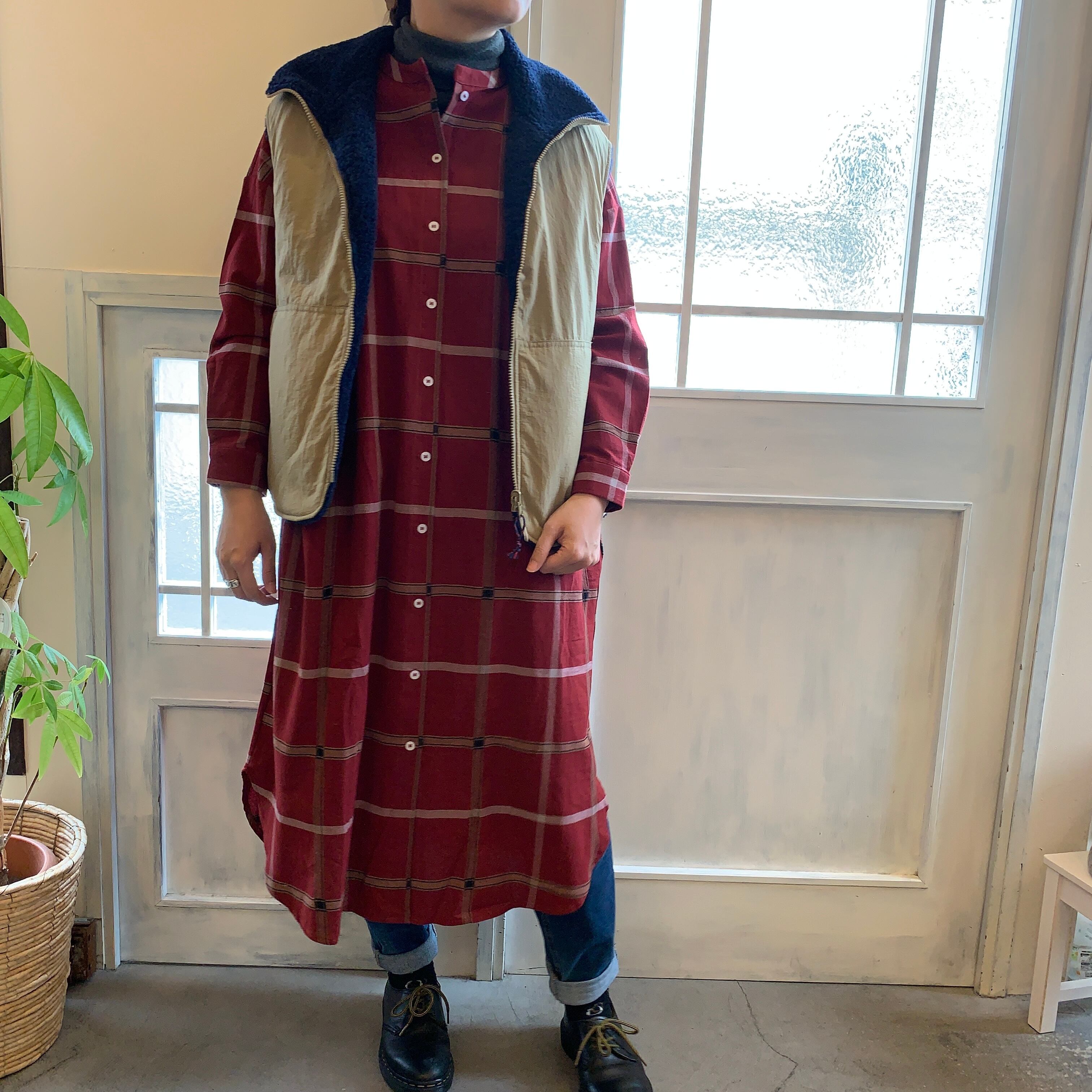 落ち着いた配色のチェックで、カジュアルになりすぎないのが大人にうれしいポイント。すらりとしたロング丈のシルエットで、バランスのよい着こなしを叶えてくれる一枚です。ボトムと合わせたレイヤードスタイルもおすすめ。