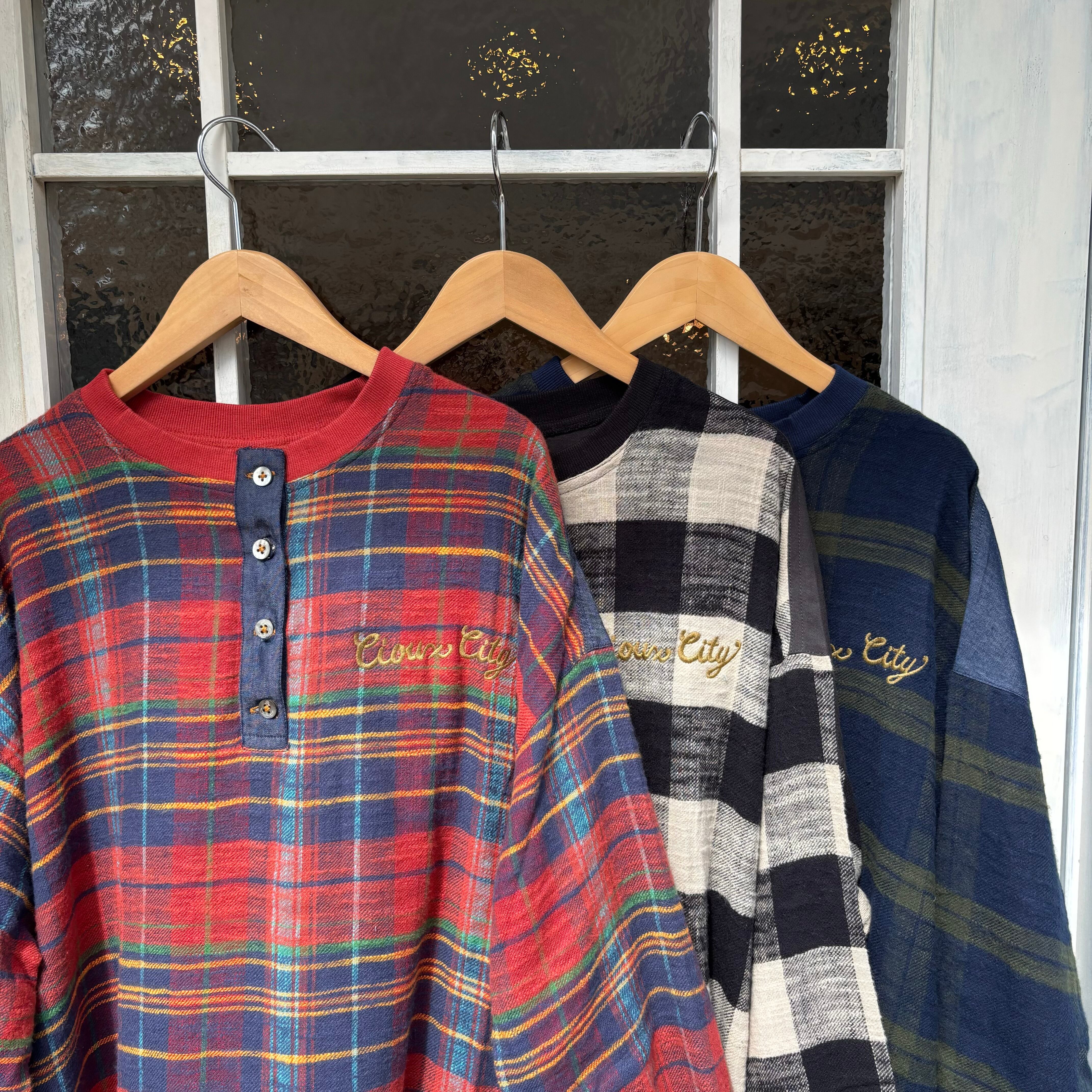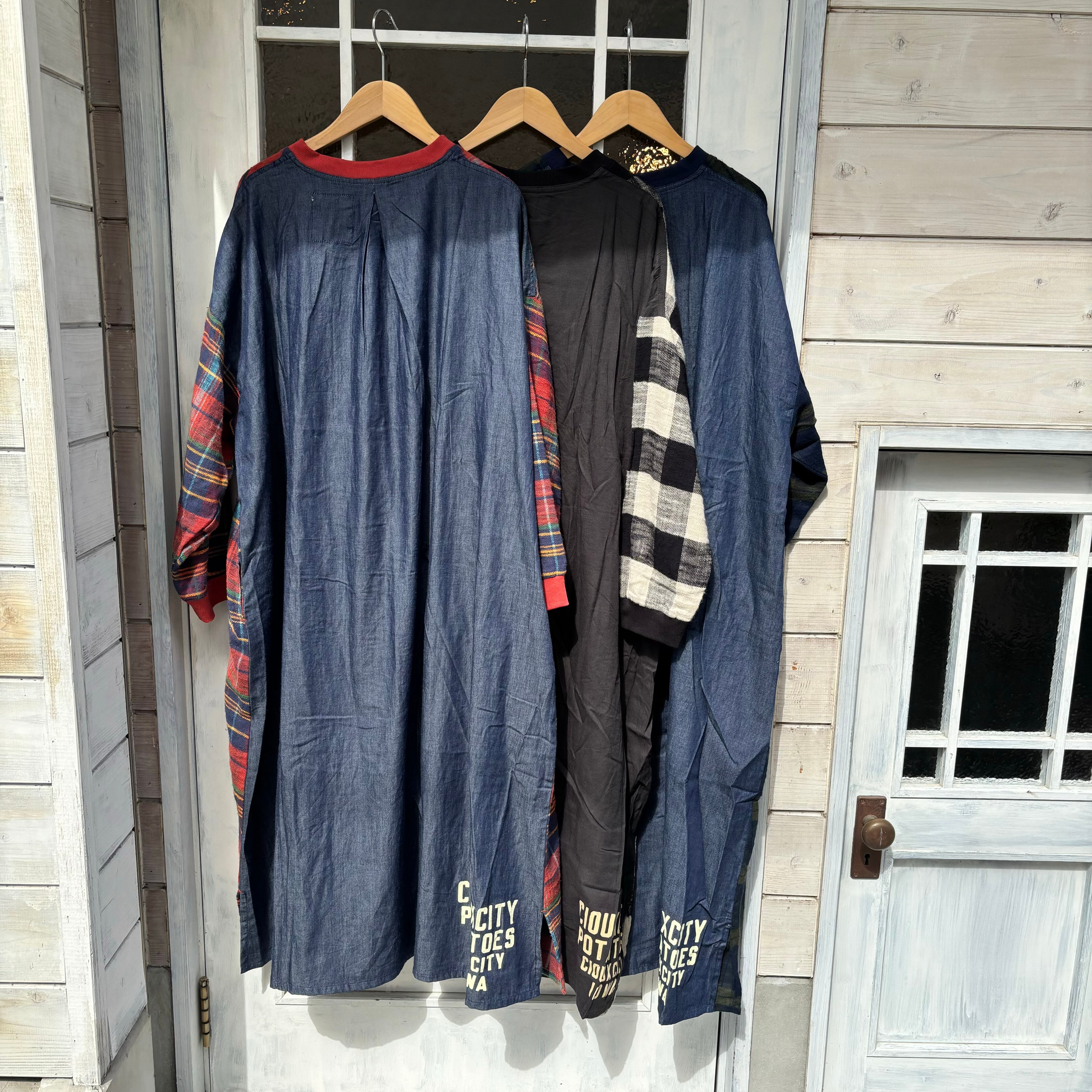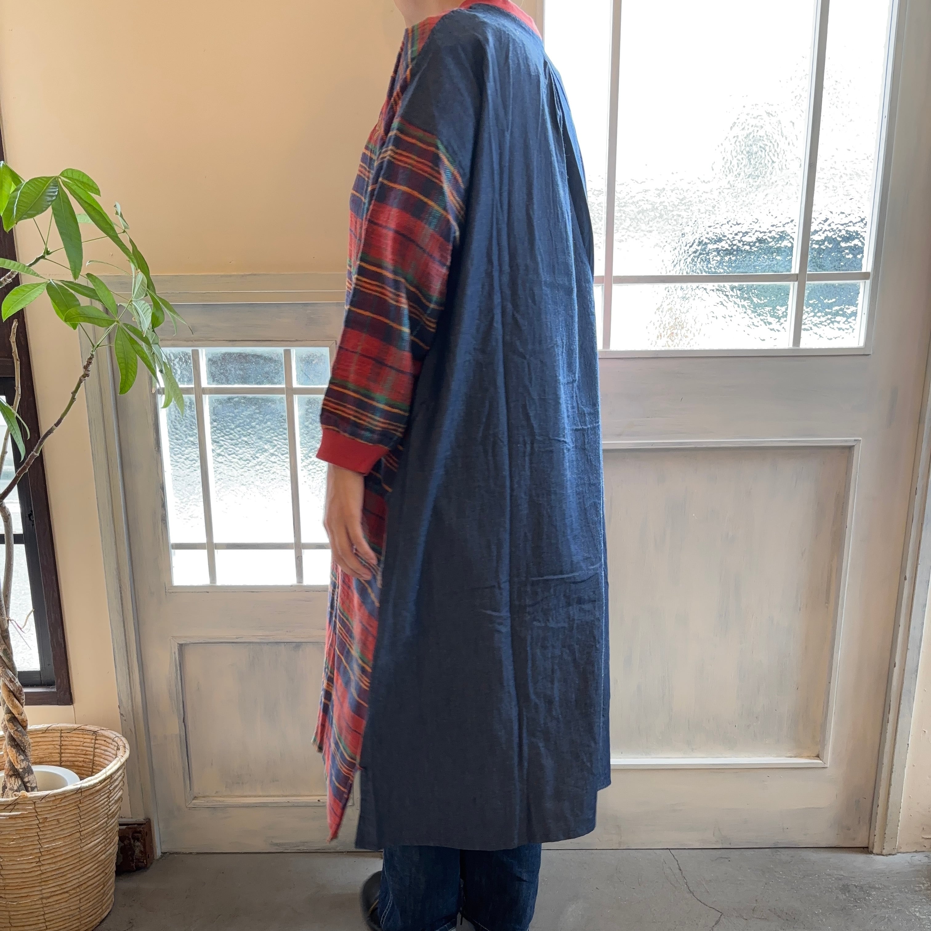 スラブチェック生地のヘンリーネックワンピースです。