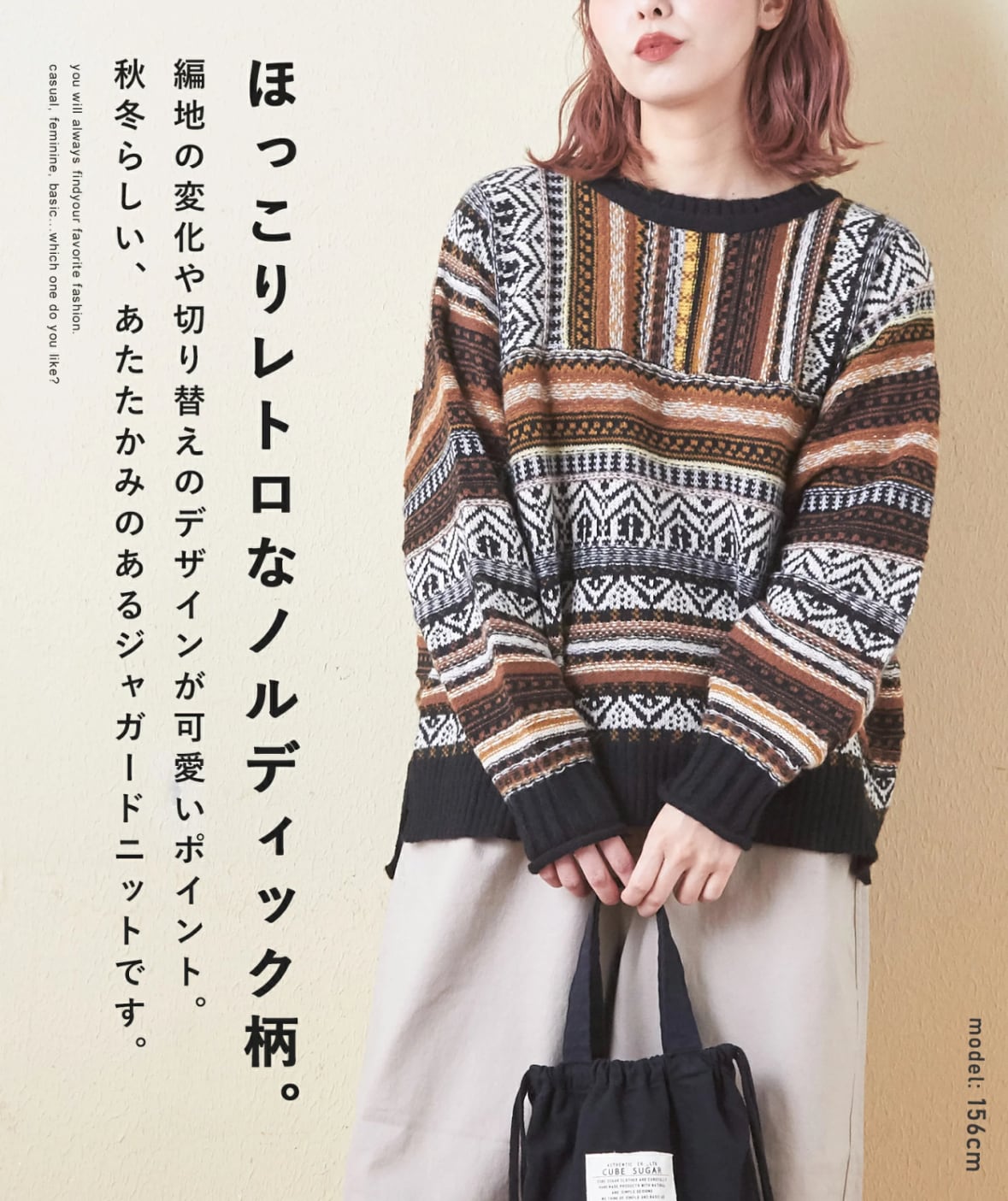 着るだけで映える!カラフルなノルディック柄のジャガードプルオーバー
