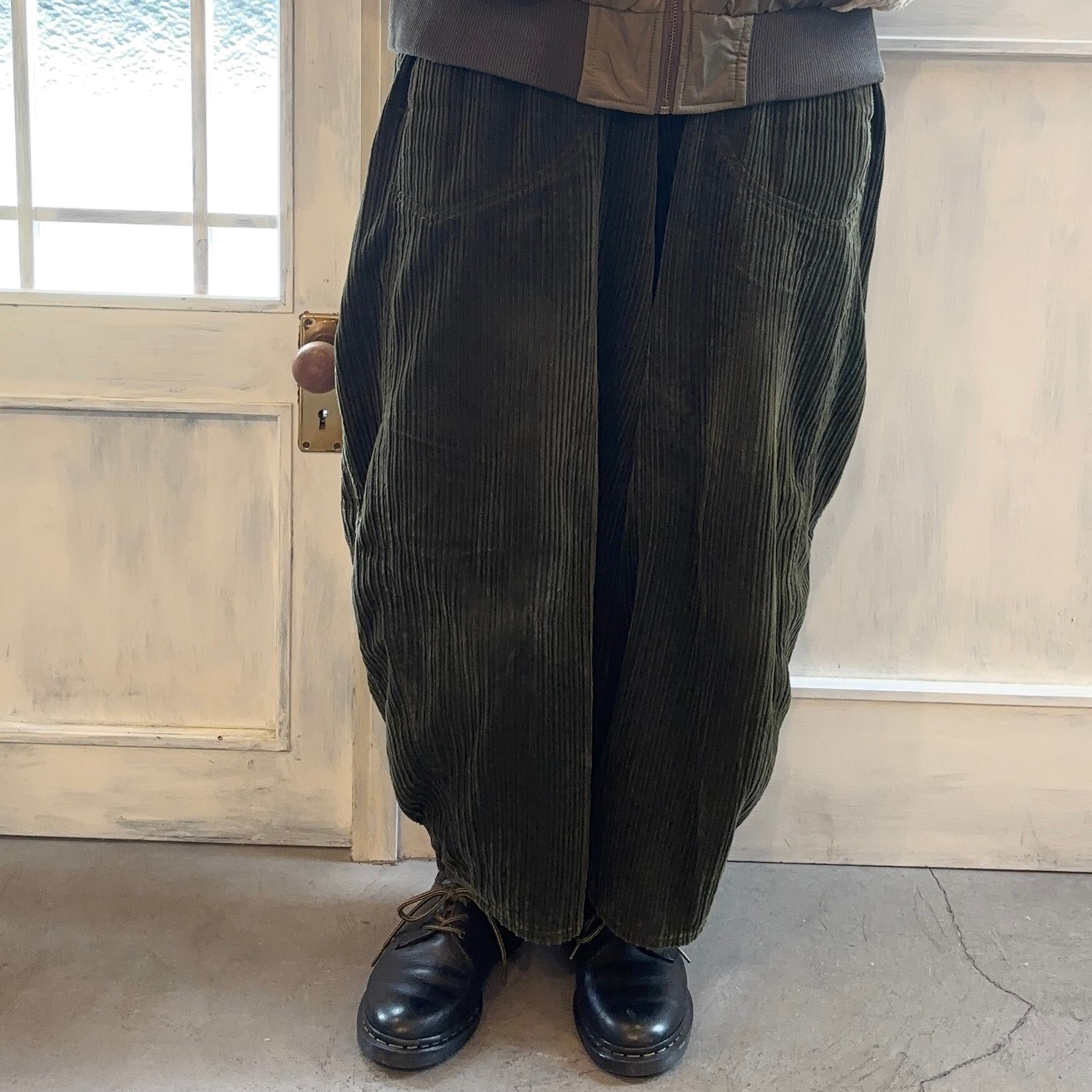 綿100%の優しい暖かみで、着用しやすくなりました。ボリュームと、脇の丸みがポイントのバルーンパンツ。